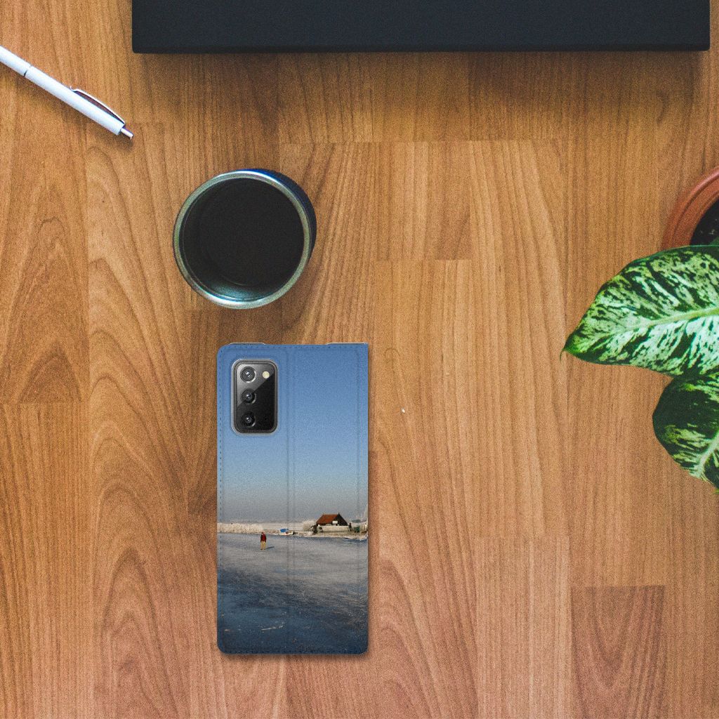 Deze mooie Samsung Galaxy Note20 Book Cover met schaatsers is een typisch Hollands product. Schaatsen is een van de oudste Nederlandse volkssporten en wordt van jongs af aan geleerd. Hoewel schaatsen ook in andere landen van het noordelijk halfrond in trek is, met name in Scandinavië (Zweden, Finland, Noorwegen), blinken Nederlanders er pas echt in uit. Mocht jij met dit hoesje met schaatsers in het buitenland aankomen zetten, dan is het meteen duidelijk waar je vandaan komt. Deze stand case is perfect op maat gemaakt en heeft een vakje voor een pasje of briefgeld. Daarnaast is de magneet aan de binnenkant zeer handig. Alle zijden van de case worden bedrukt met schaatsers en de houder aan de binnenzijde is van tpu. Dit is erg flexibel materiaal. De case heeft ook een standaard.