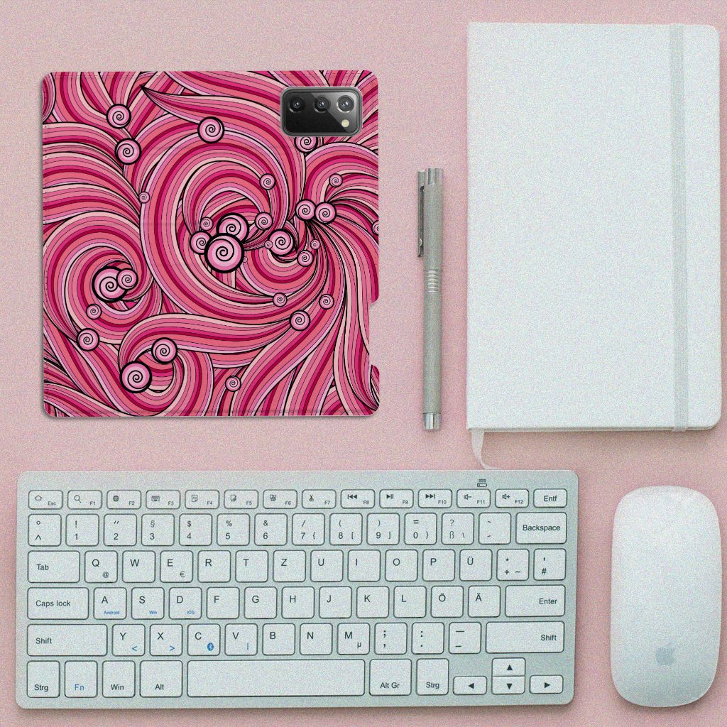 Deze mooie Samsung Galaxy Note20 Bookcase met Swirl Pink is een geweldige en duurzame bescherming voor jouw smartphone. De kleuren zijn zeer subtiel op het hoesje gezet en worden op alle zijden van de case bedrukt. Dit drukwerk doen we in eigen beheer, zodat het roze en het zwart ook uitstekend tot zijn recht komen op de stand case. Een stand hoesje is perfect op maat gemaakt en heeft een vakje voor een pasje. Daarnaast is de magneet aan de binnenkant zeer veilig. De case sluit perfect af. De houder aan de binnenzijde is van tpu. Ook de standaard aan de buitenzijde wordt in roze met zwart bedrukt. Nergens tref je een hoesje met deze kleuren aan dat zo goed past bij jouw smartphone.