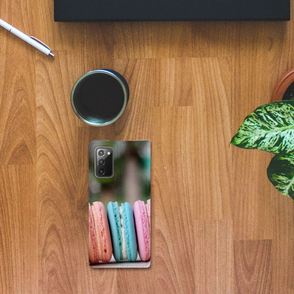 Dit stand hoesje met macarons is een zeer opvallende bescherming voor jouw smartphone. Macarons zijn Franse koekjes: kleine, rond en luchtig. Ze zijn aan elkaar geplakt met een zachte vulling. Ze worden in veel verschillende smaken gemaakt, herkenbaar aan de verschillende kleuren zoals chocolade (donkerbruin), mokka (middenbruin), kersen (rood), pistache (groen), aardbei (roze), framboos (karmijn), citroen (geel) en kokos (roomwit). Deze kleuren kun je natuurlijk ook zien op dit fraaie design hoesje met macarons. Heb je altijd al een Samsung Galaxy Note20 Flip Style Cover willen hebben met macarons? Grijp dan nu je kans. Deze case heeft zeer veel goede eigenschappen, zoals 1 opbergvakje en een magnetische sluiting aan de binnenkant. Dit design hoesje met macarons wordt aan alle zijden bedrukt. De houder aan de binnenkant van het hoesje is van TPU. De case heeft ook een handige standaard.
