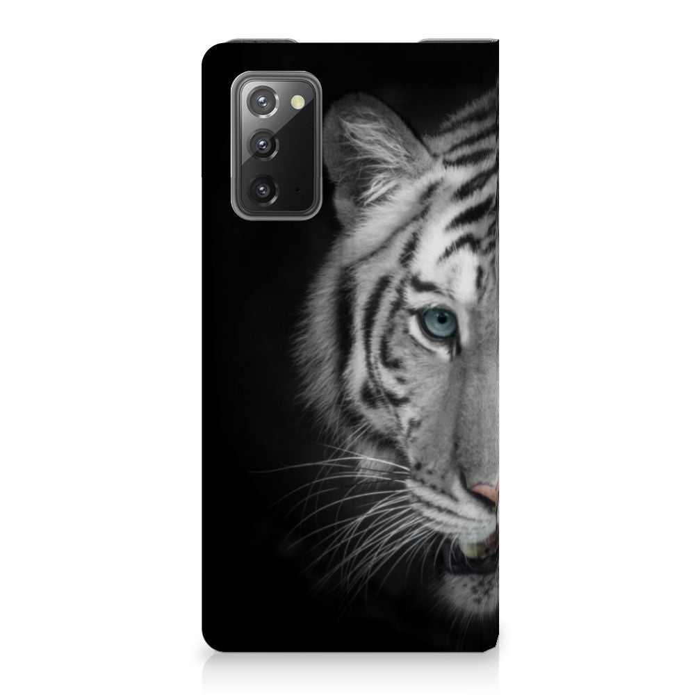 Omdat de Witte Tijger zo bijzonder is, zijn wij bereid deze voor zeer lage kosten op een stand case te zetten. Dit kunnen we zo goedkoop doen omdat we het drukwerk in eigen beheer doen. Witte tijgers leefden lange tijd in de bossen van India, Bangladesh, Nepal, Bhutan en China en kunnen wel 257 kilo wegen. Dit zwaargewicht kunnen we bedrukken op verschillende soorten hoesjes, zoals deze stand cases. Het Samsung Galaxy Note20 Hoesje maken is van PU-leer (buitenzijde) en TPU (binnenzijde) en beschikt over een houder voor pasjes en briefgeld. Verder is dit hoesje met witte tijger print voorzien van magneten aan de binnenzijde. Tegenwoordig zijn witte tijgers alleen in gevangenschap te bewonderen. Jij zorgt voor de perfecte bescherming van je smartphone met dit design hoesje met witte tijger.