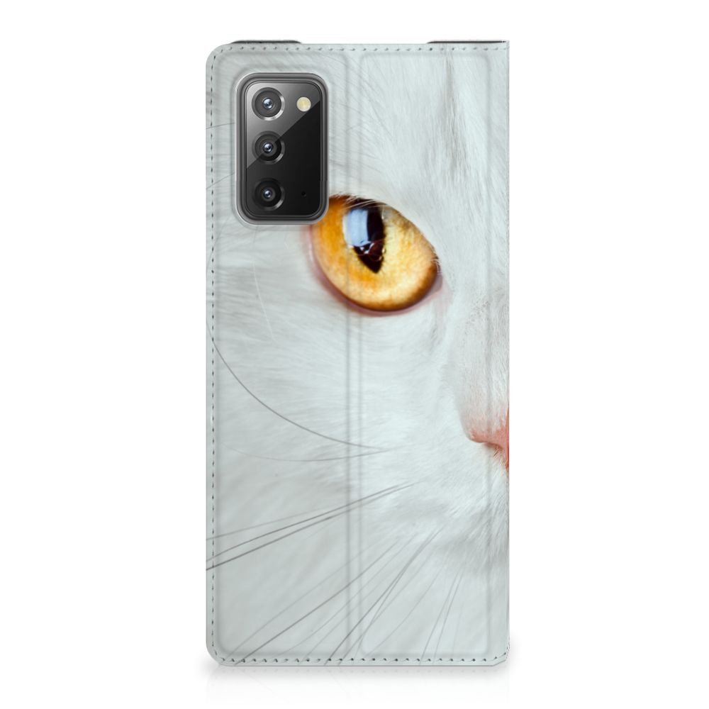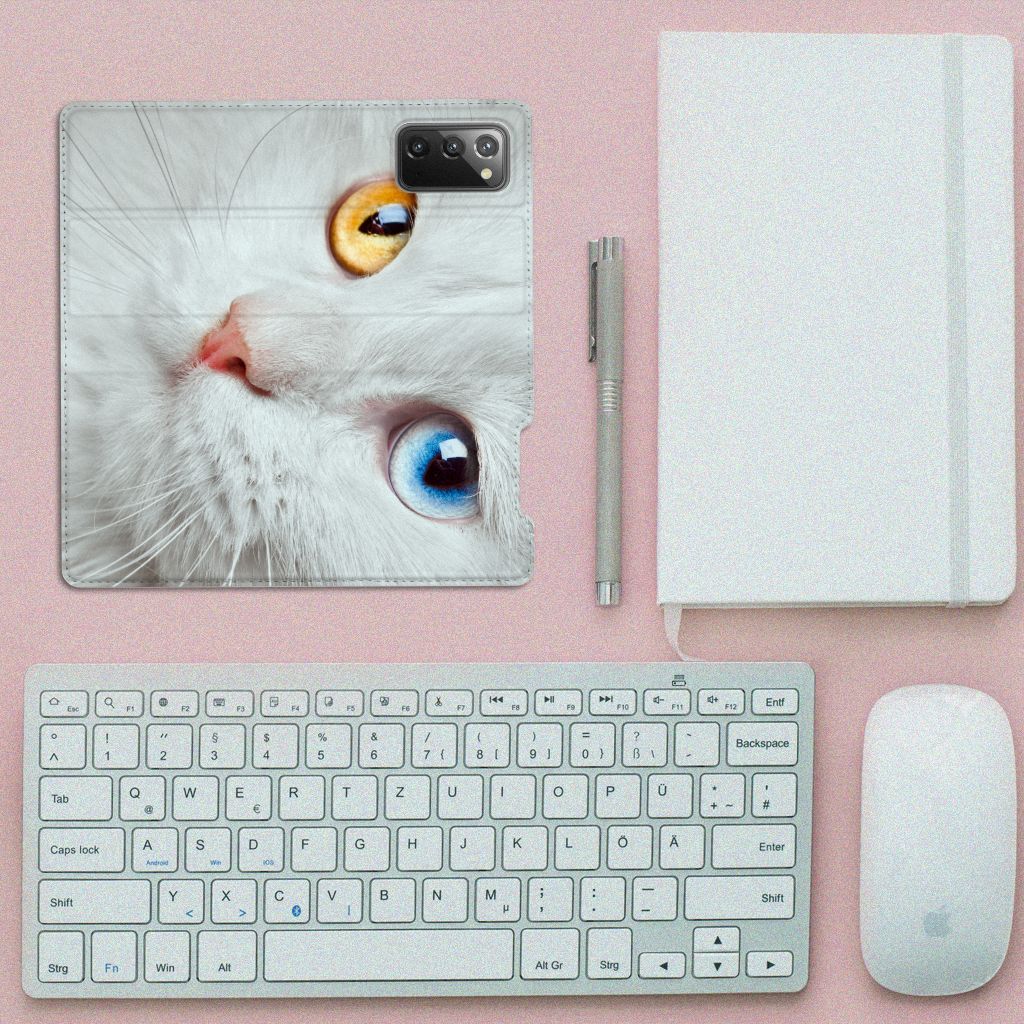 Witte katten zijn natuurlijk extra speciaal, vandaar we een exemplaar op een design hoesje hebben gezet. Een witte kat schijnt trouwens ook slechter te kunnen horen dan katten met een andere kleur. Deze witte kat staat op een zeer prominente wijze op een stand case. Deze stand case met witte kat ziet er geweldig uit en is voorzien van verschillende uitsparingen en een speciale standaard. Een Samsung Galaxy Note20 Hoesje maken met witte kat beschermt jouw smartphone perfect. Alle zijden van de case zijn bedrukt. Jouw smartphone wordt erg duurzaam met dit design hoesje. Het TPU aan de binnenzijde is zeer flexibel en het pu-leer oogt chique. Verder heeft de case een houder voor bijvoorbeeld je rijbewijs aan de binnenkant.