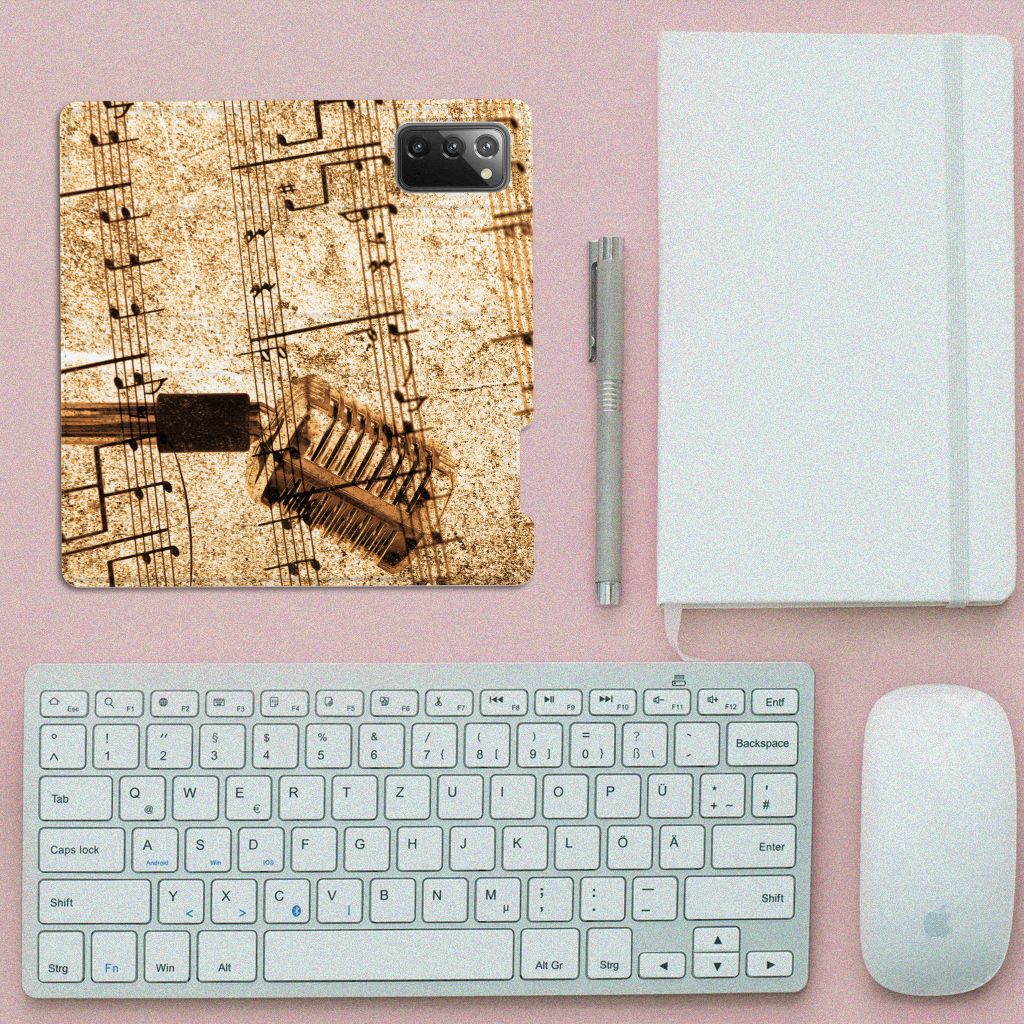Ben je muzikant, dan is dit design hoesje met Bladmuziek wellicht echt iets voor jou. Met de intrede van nieuwe media wordt de rol van papieren bladmuziek teruggedrongen. Steeds vaker treft men 'bladmuziek' op een beeldschermapparaat, zoals een tablet-pc, e-reader of iPad aan. Gelukkig maar, want als er geen nieuwe media zouden zijn, hadden wij ook nooit onze Phone Case Designer kunnen ontwerpen. Met deze unieke ontwerpmodule kun je jouw favoriete band of artiest op je smartphone hoesje zetten, maar je kunt ook gaan voor dit prachtige design hoesje met print van bladmuziek. Het design staat op een Samsung Galaxy Note20 Stand Case. Deze case beschermt jouw telefoon aan alle kanten en beschikt over een 1 opbergvakje en een speciale standaard. Het hoesje wordt afgesloten met een magneet aan de binnenzijde. De houder aan de binnenzijde is van TPU. Alle zijden van de stand case worden bedrukt.