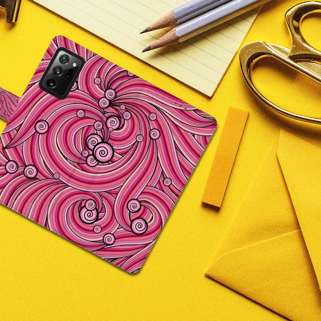 Dit mooie Samsung Galaxy Note20 Ultra Hoesje met Swirl Pink is een geweldige en duurzame bescherming voor jouw smartphone. De kleuren zijn zeer subtiel op het hoesje gezet en worden op alle zijden van de case bedrukt. Dit drukwerk doen we in eigen beheer, zodat het roze en het zwart ook uitstekend tot zijn recht komen op het boekhoesje. Een boekhoesje is perfect op maat gemaakt en heeft verschillende vakjes voor pasjes en briefgeld. Daarnaast is het lipje aan de buitenkant zeer veilig. De case sluit perfect af. De houder aan de binnenzijde is van tpu en is doorzichtig. Ook het lipje aan de buitenzijde wordt in roze met zwart bedrukt. Nergens tref je een hoesje met deze kleuren aan dat zo goed past bij jouw smartphone.