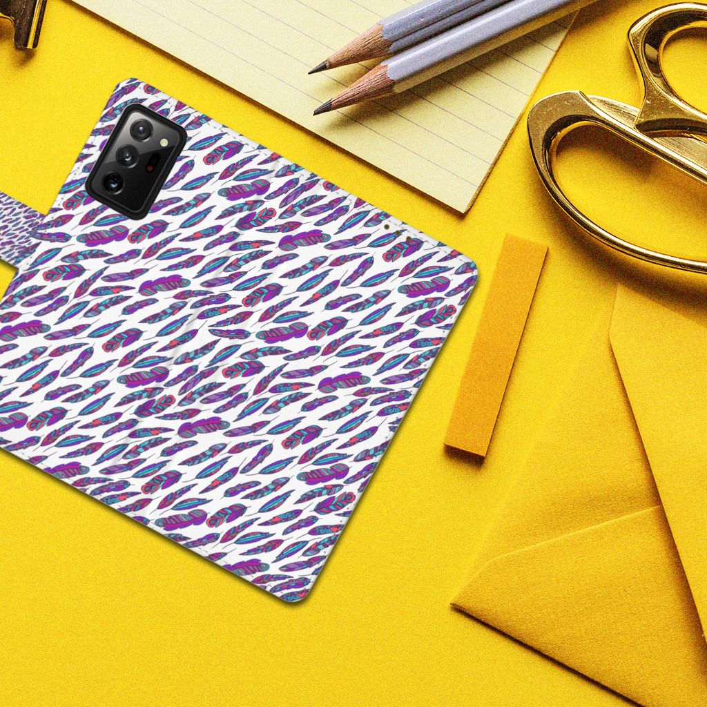 Ben je op zoek naar een uniek telefoonhoesje voor je Samsung Galaxy Note20 Ultra? Dan ben je bij B2C Telecom aan het juiste adres! Speciaal voor jou hebben we dit prachtige Feathers Color design in onze collectie hoesjes opgenomen. Het design wordt bedrukt op een Telefoon Hoesje en heeft twee vakjes voor pasjes en een groter vakje voor briefgeld. Alle zijdes van het hoesje worden bedrukt, hoe uniek is dat? Het hoesje wordt afgesloten met een sluit lipje aan de voorkant. Wil je dit design hoesje nog iets extra's geven? Voeg dan gratis je naam of een quote toe! Is dit design hoesje toch niet helemaal wat je zocht? Ontwerp dan zelf een hoesje in ons ontwerpprogramma.