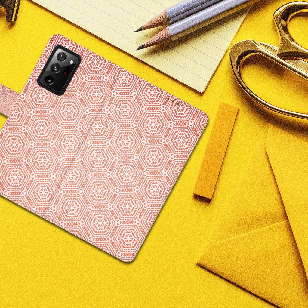 Dit Samsung Galaxy Note20 Ultra Telefoon Hoesje met Pattern Orange vind je in geen enkel andere winkel of webshop. Heb je het eenmaal in je bezit, dan wil waarschijnlijk nooit meer een ander smartphone hoesje meer. Het design met oranje en wit patroon is bijzonder smaakvol en op maat gemaakt voor jouw smartphone. Dat is de kracht van het hoesje. Met dit design hoesje met oranje en wit patroon zal je ook heel erg opvallen. Dit is voor veel smartphone gebruikers een belangrijk voordeel. Dit zeer populaire smartphone hoesje met oranje patroon heeft verschillende vakjes en is aan alle zijden bedrukt. Zelfs het lipje aan de buitenkant heeft een print. Het oranje patroon staat op dit boekhoesje erg goed. De houder is van TPU, de buitenzijde van PU-leer.