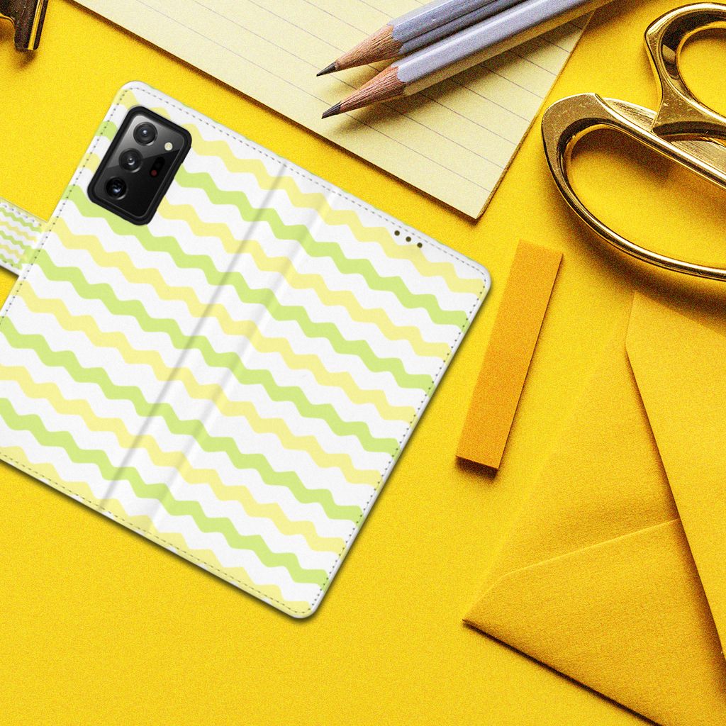 Dit Waves Yellow design hoesje met licht groene en gele golven is speciaal ontworpen voor jouw telefoon. We hebben een vleugje lichtgeel toegevoegd, zodat de case er een beetje spannender en leuker uitziet. Dit licht groene hoesje met licht groene golven ziet er oogstrelend uit. Het wordt in ons eigen magazijn bedrukt, in zeer goede kwaliteit inkt. Wij kunnen dus een zeer duurzaam hoesje met licht groene golven garanderen. Dit hele mooie Samsung Galaxy Note20 Ultra Telefoon Hoesje heeft vele extra’s. Is dit licht groene design hoesje je op het lijf geschreven? Grijp dan nu je kans. Een boekhoesje met lichtgroene golven beschermt jouw telefoon aan alle zijden en beschikt over meerdere houders voor pasjes en briefgeld. De case sluit perfect af met het magnetisch lipje aan de buitenkant. De houder aan de binnenzijde is van het flexibele TPU. Alle zijden van het licht groene hoesje met golven worden bedrukt, inclusief het lipje.