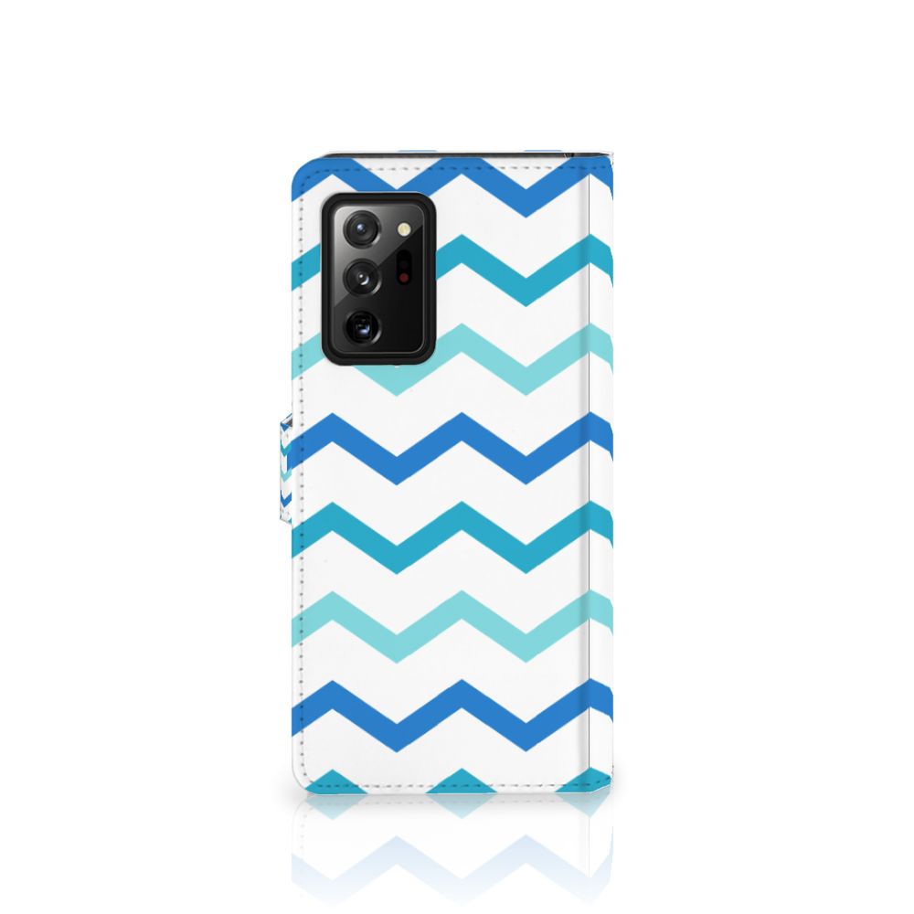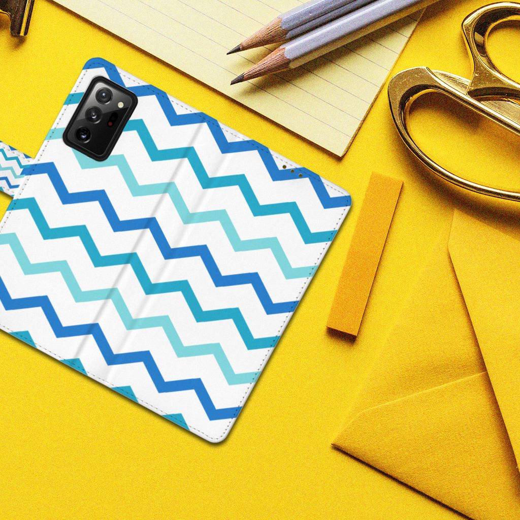 Dit zigzag blauwe design hoesje is speciaal ontworpen voor jou. We hebben bewust verschillende stijlen blauw gebruikt, zodat er voldoende sprake is van variatie. Dit blauwwitte Telefoon Hoesje ziet er super strak uit. Dat kan ook niet anders, als je weet dat onze zeer talentvolle designer er hoogstpersoonlijk voor verantwoordelijk is. Hij schudt wekelijks nieuwe designs uit zijn mouw en dit zigzag blauwe hoesje is een van zijn fraaiste creaties. Een heel dik design hoesje, al zeggen we het zelf. Valt dit blauwwitte design hoesje goed bij jou? Bestel het dan vandaag nog en je hebt het morgen in huis. Het design staat op een boekhoesje. Dit smartphonehoesje beschermt jouw Samsung Galaxy Note20 Ultra aan alle zijden en beschikt over verschillende opbergvakjes voor pasjes en briefgeld. De case sluit perfect af met het lipje aan de buitenkant. De houder aan de binnenzijde is van TPU. Alle zijden van het hoesje worden bedrukt, inclusief het lipje.