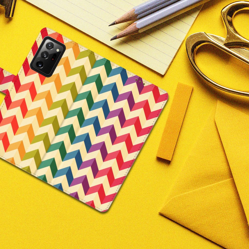 Ben je op zoek naar een uniek telefoonhoesje voor je Samsung Galaxy Note20 Ultra? Dan ben je bij B2C Telecom aan het juiste adres! Speciaal voor jou hebben we dit prachtige Zigzag Color design in onze collectie hoesjes opgenomen. Het design wordt bedrukt op een Telefoon Hoesje en heeft twee vakjes voor pasjes en een groter vakje voor briefgeld. Alle zijdes van het hoesje worden bedrukt, hoe uniek is dat? Het hoesje wordt afgesloten met een sluit lipje aan de voorkant. Wil je dit design hoesje nog iets extra's geven? Voeg dan gratis je naam of een quote toe! Is dit design hoesje toch niet helemaal wat je zocht? Ontwerp dan zelf een hoesje in ons ontwerpprogramma.