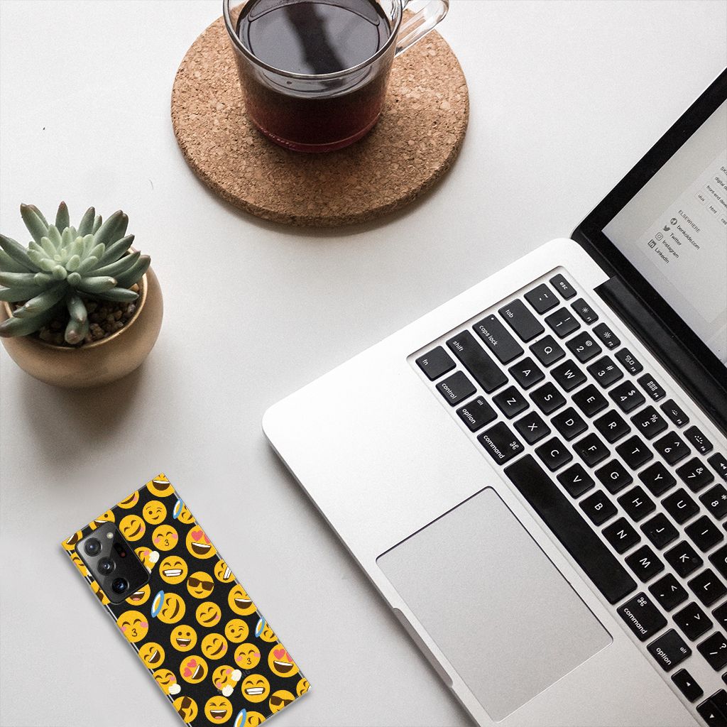 Je gebruikt ze waarschijnlijk dagelijks: emoji’s. Daarom hebben we besloten ze op een design hoesje te zetten. De kleurrijke, vaak gele emoticons maken chatberichten net wat spontaner. Dat hebben we allemaal te danken aan Japan, waar de emoji’s die we zo goed kennen vandaan komen. Ondertussen zijn er meer dan 1800! Deze passen natuurlijk niet allemaal op een Samsung Galaxy Note20 Ultra TPU bumper, maar we hebben de meeste gebruikte exemplaren erop gezet. Deze tpu case is voorzien van opstaande randen zodat het touchscreen van je telefoon beter is beschermd. Super handig. Het TPU zelf is zeer flexibel en is op maat gemaakt. We gebruiken emoji’s vaak om complete woorden te vervangen. Dit smartphone hoesje zegt dan ook meer dan duizend woorden kunnen. De tpu case wordt alleen aan de bovenzijde bedrukt met emoji’s. De zijkanten van de case worden niet bedrukt en blijven transparant.