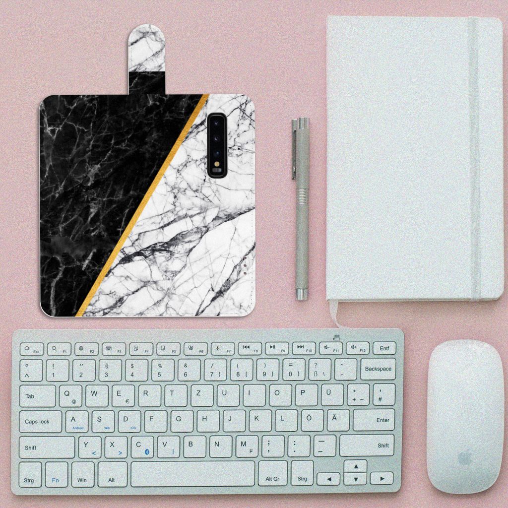 Bookcase Samsung Galaxy S10 Marmer Wit Zwart