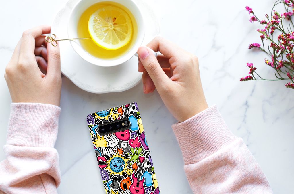Ben je op zoek naar een uniek telefoonhoesje voor je Samsung Galaxy S10? Dan ben je bij B2C Telecom aan het juiste adres! Speciaal voor jou hebben we dit prachtige Punk Rock in onze collectie design hoesjes opgenomen. Het design wordt bedrukt op een Hippe Standcase en heeft een vakje aan de binnenkant voor een pasje. Het fijne aan dit hoesje is dat je het als standaard neer kunt zetten. Hierdoor geniet je nog meer als je een filmpje aan het kijken bent op je telefoon. Het hoesje wordt afgesloten door magneten aan de binnenkant. Wil je dit design hoesje nog iets extra's geven? Voeg dan gratis je naam of een quote toe! Is dit design hoesje toch niet helemaal wat je zocht? Ontwerp dan zelf een hoesje in ons ontwerpprogramma.