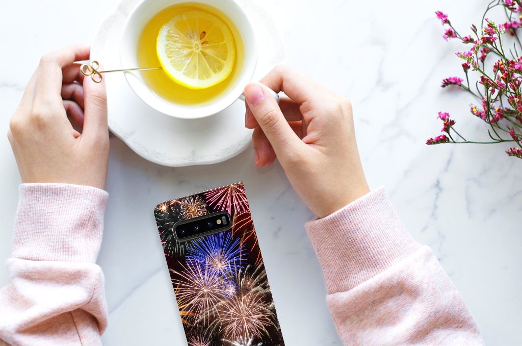 Deze Samsung Galaxy S10 Hippe Standcase levert gegarandeerd Vuurwerk op. Kijk alleen al eens naar de print van siervuurwerk, in zeer veel verschillende kleuren. Als je dit hoesje ziet kun je bijna niet geloven dat sommige gemeenten in Nederland overwegen om vuurwerk te verbieden. Er gebeuren weliswaar ongelukken mee, maar zoiets schitterends als op deze stand case met vuurwerk wil je toch gewoon niet missen. Bovendien beschermt dit hoesje jouw smartphone aan alle kanten. Alle zijden van deze case worden bedrukt en met een speciale standaard is het erg prettig om filmpjes te bekijken. De case wordt aan de binnenzijde met een magneet afgesloten en de houder aan de binnenzijde is van TPU. Onder alle omstandigheden zal deze case met 1 opbergvakje perfect functioneren, ook als je met nieuwjaar vuurwerk aan het afsteken bent. Zorg dan overigens wel dat je zelf ook voldoende afgeschermd bent van het vuurwerk.