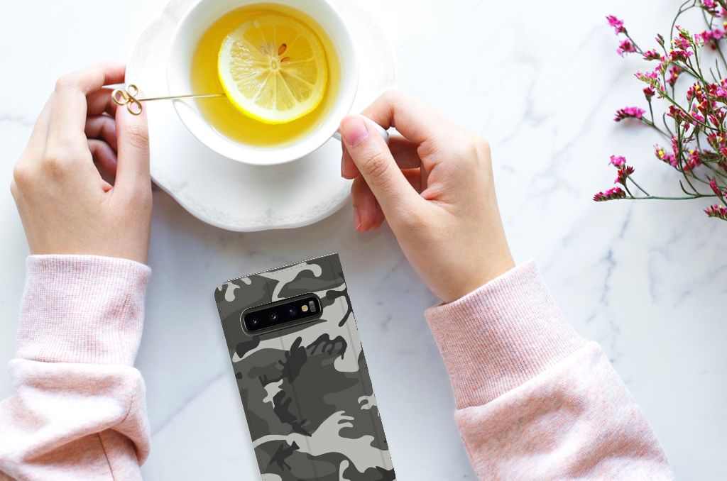 Heb je veel respect voor het leger, dan zal dit telefoonhoesje je zeker bevallen. De Samsung Galaxy S10 Hoesje met Magneet beschikt namelijk over een Army Light print. Camouflage kleding wordt vaak gedragen door mensen die zich graag willen mengen in of met hun omgeving. Dit donkere camouflage hoesje is er dan ook voornamelijk in kleuren die in de natuur voorkomen, zodat je één wordt met je achtergrond. Het design staat op een stand case. Deze stand case beschermt jouw telefoon aan alle kanten en beschikt over een 1 opbergvakje en een speciale standaard. Het donkere hoesje wordt afgesloten met een magneet aan de binnenzijde. De houder aan de binnenzijde is van TPU. Alle zijden van het hoesje worden bedrukt. Beschermt het leger volk en vaderland, dit hoesje in donkere camouflage kleuren zal jouw telefoon onder alle omstandigheden schadevrij houden. Met een leger hoesje in dit soort kleuren zal je niet zo snel opvallen, maar waarschijnlijk ben je daar ook niet naar op zoek. Wel is het een hele stoere stand case.