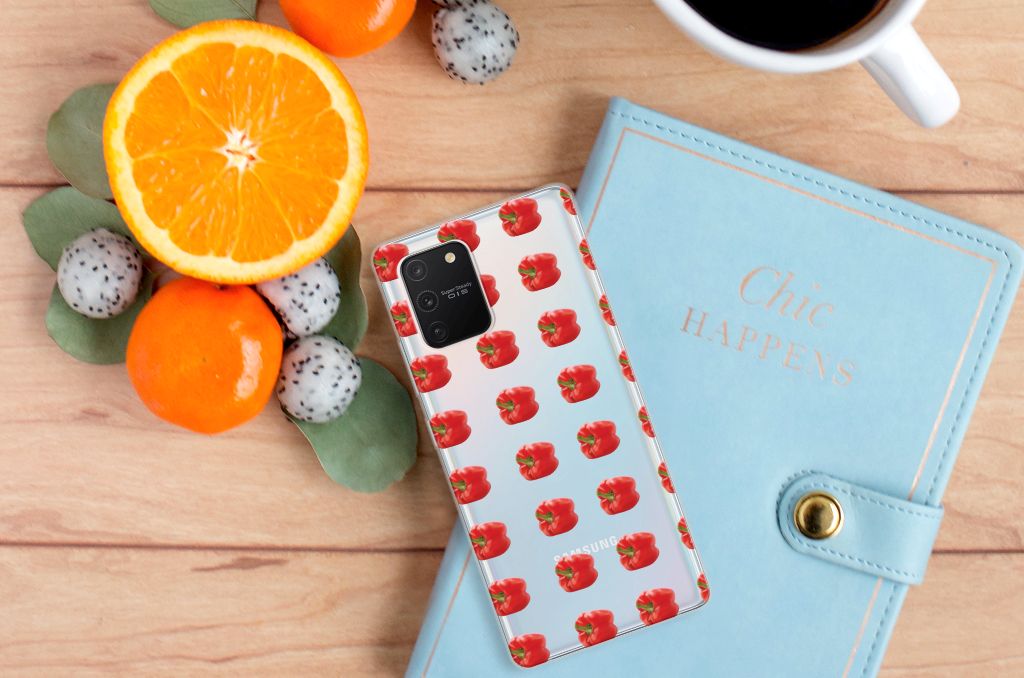Er zit pit in jouw Samsung Galaxy S10 Lite Siliconen Case dankzij dit design met rode paprika’s. Paprika’s zijn er in allerlei kleuren en vormen en ze hebben gemeen dat ze heel erg gezond zijn. De rode paprika’s op deze case staan op een grijs met witte geblokte achtergrond en vormen een opvallende verschijning. Heb jij ooit iemand in je nabije omgeving rond zien lopen met een design hoesje met rode paprika’s? Waarschijnlijk niet. Dit hoesje wordt alleen aan de bovenkant bedrukt met paprika’s en is zeer flexibel. De randen van het hoesje blijven transparant en worden niet bedrukt. Met dit hoesje past jouw telefoon altijd in je broekzak. Zeker weten dat je met dit hoesje met rode paprika’s een smartphone accessoire te pakken hebt waarmee je jezelf in de schijnwerpers zet. Als je andere kleuren paprika’s op je hoesje wilt, raden we je aan ons assortiment design hoesjes te bekijken of zelf een hoesje te ontwerpen.