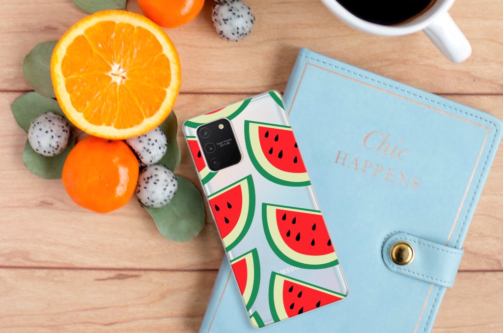 Watermeloenen zijn uitstekende dorstlessers, misschien dat je daarom juist in de zomermaanden extra enthousiast raakt van dit design hoesje Watermelons. Jij blijft gezond als je zo nu en dan een watermeloen neemt, jouw smartphone blijft in tact als je er deze Samsung Galaxy S10 Lite Siliconen Case omheen doet. Deze tpu case wordt alleen aan de bovenkant bedrukt met watermeloenen is zeer flexibel. De randen van het hoesje blijven transparant. Je kunt ook kiezen voor andere soorten fruit op je hoesje. Kijk maar eens naar onze andere design hoesjes op onze website.