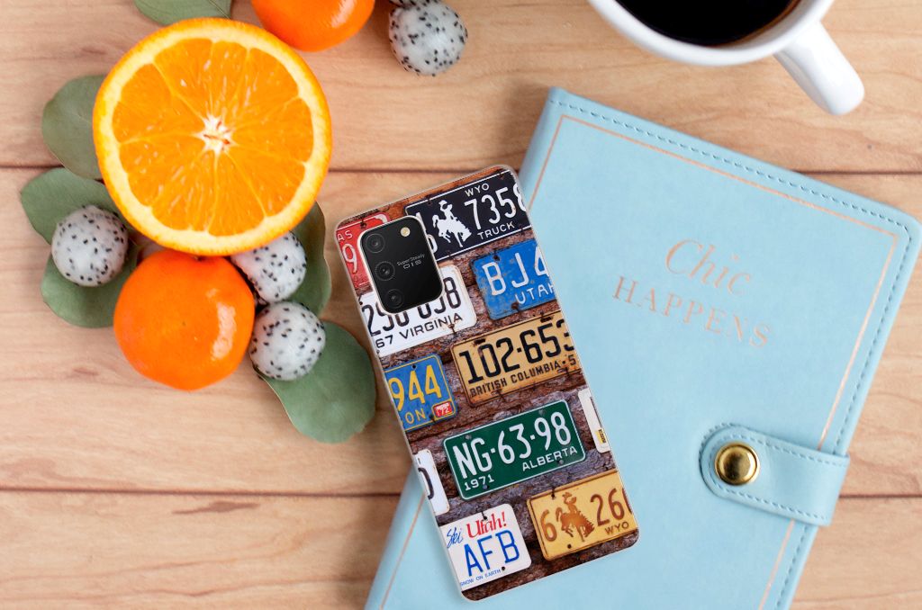 Je gaat waarschijnlijk helemaal uit je plaat met deze Samsung Galaxy S10 Lite Siliconen Hoesje met foto met Amerikaanse Kentekenplaten. Kentekenplaten van Utah, Virginia, Nebraska, Kansas en Iowa: ze komen allemaal voorbij op deze opzienbarende tpu case, te koop voor een zeer scherpe prijs. Behalve een hoes met een fraaie print van kentekenplaten krijg je ook een case met zeer veel praktische eigenschappen. Zoals het elastische materiaal, dat de ergste schokken en stoten zeer makkelijk opvangt als je telefoon op de grond valt. De case wordt aan de bovenkant bedrukt, terwijl de zijkanten transparant blijven. De case heeft opstaande randen, waardoor het scherm extra beschermd is. Samen met een screenprotector is een betere bescherming dan deze tpu case met Amerikaanse kentekenplaten nauwelijks denkbaar.