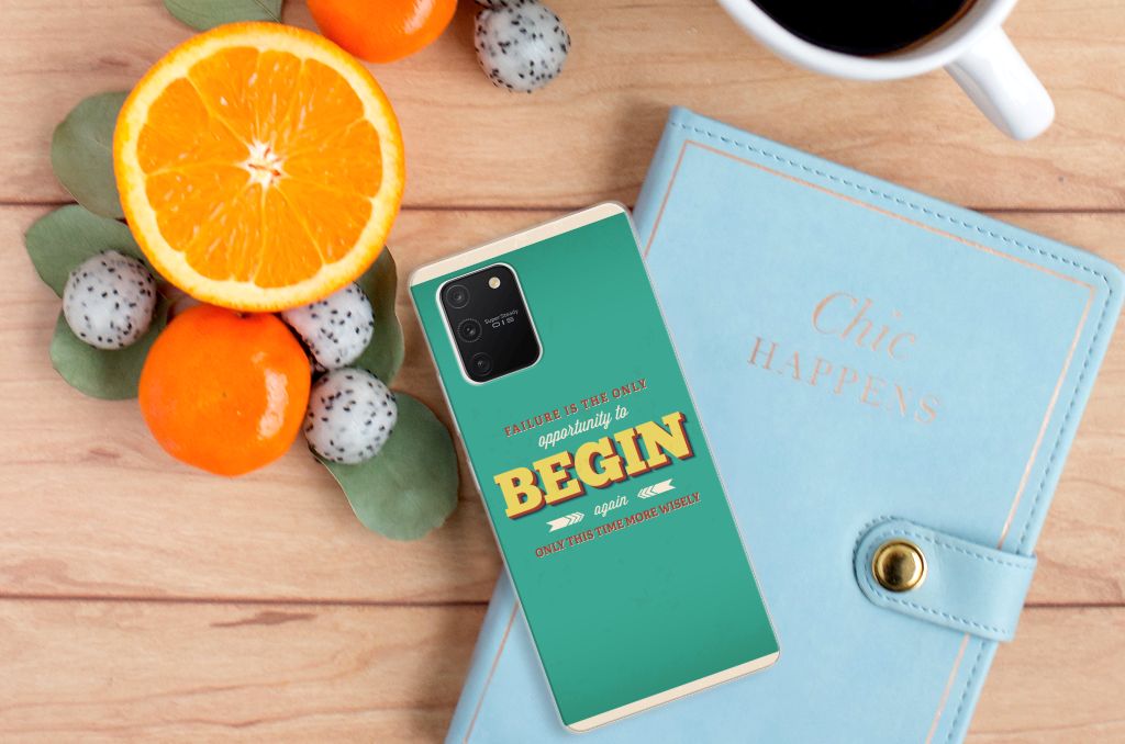 Ben je op zoek naar een uniek telefoonhoesje voor je Samsung Galaxy S10 Lite? Dan ben je bij B2C Telecom aan het juiste adres! Speciaal voor jou hebben we dit prachtige Quote Begin design in onze collectie hoesjes opgenomen. Het design wordt bedrukt op een Siliconen hoesje met naam en is gemaakt van flexibel rubber. Het design wordt alleen aan de bovenkant van het hoesje bedrukt en de randen blijven transparant. Aan de zijkanten zijn uitsparingen gemaakt waardoor je met gemak alle knoppen en poorten kunt bedienen. Wij adviseren om dit hoesje in combinatie met een screenprotector te gebruiken voor een langere levensduur van je telefoon. Wil je dit design hoesje nog iets extra's geven? Voeg dan gratis je naam of een quote toe! Is dit design hoesje toch niet helemaal wat je zocht? Ontwerp dan zelf een hoesje in ons ontwerpprogramma.