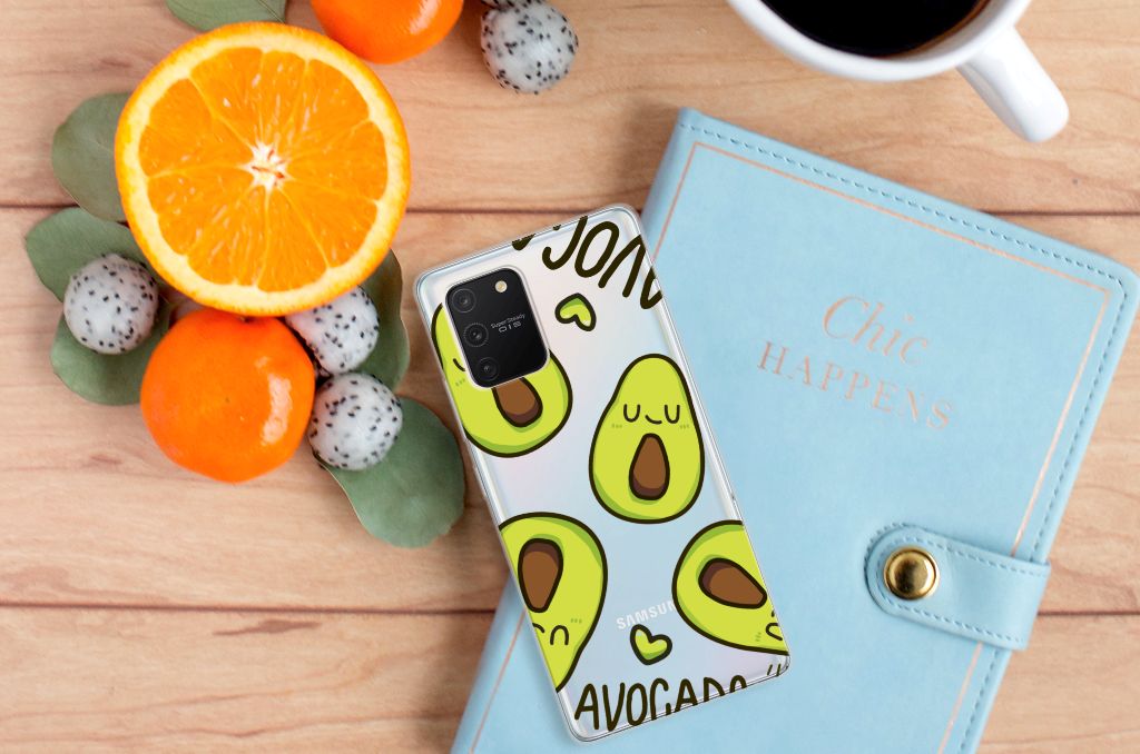 Avocado’s zijn niet alleen heel erg goed voor je, ze zijn ook super leuk op je telefoonhoesje. Dit unieke design vol schattige avocado’s zal jou en iedereen om je heen meteen opvrolijken. Nog een voordeel van dit design: deze avocado’s bederven nooit! Dit leuke Avocado Singing-ontwerp staat op een Telefoonhoesje met Naam voor de Samsung Galaxy S10 Lite. Met deze vrolijke groene vruchten op je hoesje val jij zeker op. TPU is flexibel en onbreekbaar. Zo is je telefoon aan de achterkant en de randen heel goed beschermd. De case is aan de bovenkant bedrukt, de randen blijven transparant. Het TPU-hoesje is perfect te combineren met een screenprotector, zo zijn je telefoon en je beeldscherm perfect beschermd.