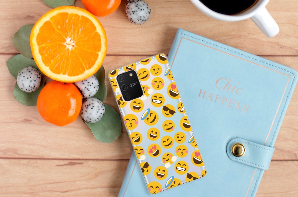 Je gebruikt ze waarschijnlijk dagelijks: emoji’s. Daarom hebben we besloten ze op een design hoesje te zetten. De kleurrijke, vaak gele emoticons maken chatberichten net wat spontaner. Dat hebben we allemaal te danken aan Japan, waar de emoji’s die we zo goed kennen vandaan komen. Ondertussen zijn er meer dan 1800! Deze passen natuurlijk niet allemaal op een Samsung Galaxy S10 Lite TPU bumper, maar we hebben de meeste gebruikte exemplaren erop gezet. Deze tpu case is voorzien van opstaande randen zodat het touchscreen van je telefoon beter is beschermd. Super handig. Het TPU zelf is zeer flexibel en is op maat gemaakt. We gebruiken emoji’s vaak om complete woorden te vervangen. Dit smartphone hoesje zegt dan ook meer dan duizend woorden kunnen. De tpu case wordt alleen aan de bovenzijde bedrukt met emoji’s. De zijkanten van de case worden niet bedrukt en blijven transparant.