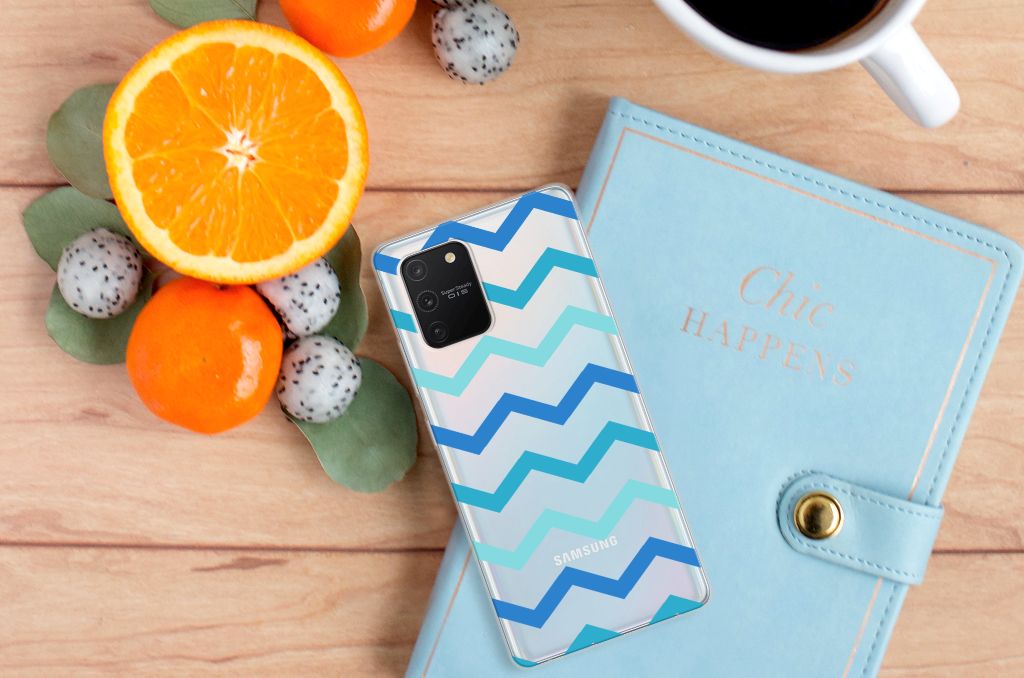 Dit zigzag blauwe design hoesje is speciaal ontworpen voor jou. We hebben bewust verschillende stijlen blauw gebruikt, zodat er voldoende sprake is van variatie. Dit blauwwitte TPU bumper ziet er super strak uit. Dat kan ook niet anders, als je weet dat onze zeer talentvolle designer er hoogstpersoonlijk voor verantwoordelijk is. Hij schudt wekelijks nieuwe designs uit zijn mouw en dit zigzag blauwe hoesje is een van zijn fraaiste creaties. Een heel dik design hoesje, al zeggen we het zelf. Valt dit blauwwitte design hoesje goed bij jou? Bestel het dan vandaag nog en je hebt het morgen in huis. Het design staat op een TPU case. Dit hoesje wordt alleen aan de bovenkant bedrukt en is zeer flexibel. De randen van het hoesje blijven transparant en worden niet bedrukt. Met dit hoesje past jouw Samsung Galaxy S10 Lite altijd in je broekzak.