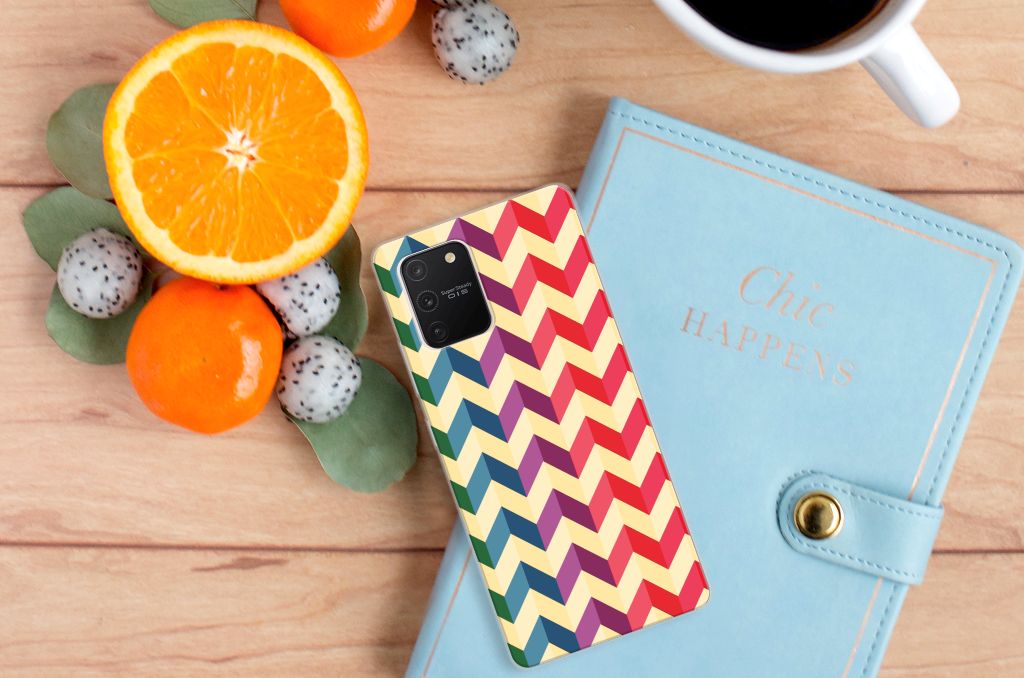 Ben je op zoek naar een uniek telefoonhoesje voor je Samsung Galaxy S10 Lite? Dan ben je bij B2C Telecom aan het juiste adres! Speciaal voor jou hebben we dit prachtige Zigzag Color design in onze collectie hoesjes opgenomen. Het design wordt bedrukt op een TPU bumper en is gemaakt van flexibel rubber. Het design wordt alleen aan de bovenkant van het hoesje bedrukt en de randen blijven transparant. Aan de zijkanten zijn uitsparingen gemaakt waardoor je met gemak alle knoppen en poorten kunt bedienen. Wij adviseren om dit hoesje in combinatie met een screenprotector te gebruiken voor een langere levensduur van je telefoon. Wil je dit design hoesje nog iets extra's geven? Voeg dan gratis je naam of een quote toe! Is dit design hoesje toch niet helemaal wat je zocht? Ontwerp dan zelf een hoesje in ons ontwerpprogramma.