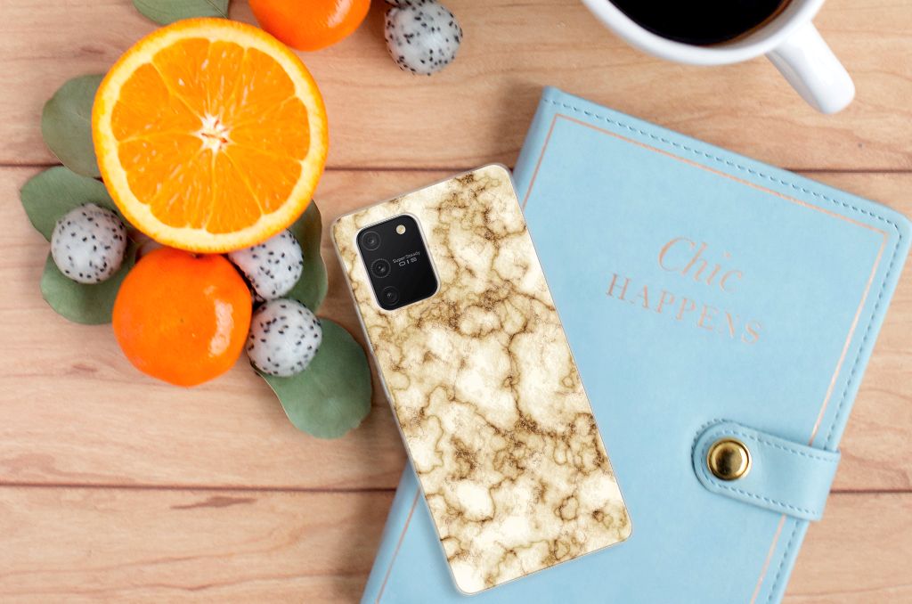 Deze Samsung Galaxy S10 Lite TPU Siliconen Hoesje met Marmer Goud is het waard om een blokje voor om te rijden. Dit is overigens niet nodig. Als je het hoesje met goud marmer nu bestelt heb je het zeer snel in huis. Je kunt er bij wijze van spreken thuis op gaan zitten wachten. Je hebt diverse soorten marmer. We hebben enkele fraaie kleuren op onze hoesjes gezet, zoals in dit geval het gouden marmer. Het goud marmer wordt bedrukt op de achterkant van de tpu case, die beschikt over alle nodige uitsparingen waardoor je alle knoppen en poorten van je smartphone kunt bedienen. Verder is de case met goud marmer gemaakt van zeer flexibel materiaal. De rijkheid aan kleuren en varianties in afwerking is een schitterende eigenschap van marmer. Dit tpu hoesje met goud marmer heeft ook veel schitterende eigenschappen en is de ideale bescherming voor jouw smartphone.