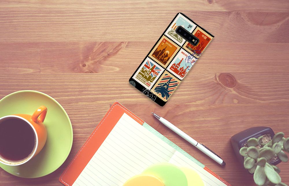 Voor de postzegelverzamelaars onder ons is dit hoesje met Postzegels uit verschillende landen een zegen. Maar ook andere smartphone gebruikers zullen enthousiast raken bij het zien van deze fraaie stand case met zegels uit verschillende landen. Op een Samsung Galaxy S10 Plus Book Cover kun je er nogal wat kwijt, omdat alle zijden van de case kunnen worden bedrukt. Zelfs de standaard aan de buitenzijde is voorzien van een postzegel print. Aan de binnenzijde tref je een vakje aan voor een pasje of briefgeld en een houder van TPU. Deze klemt precies om je smartphone, zodat die veilig is opgeborgen. Mis je nog een bepaalde postzegel op deze case? Dan kun je natuurlijk ook zelf een hoesje ontwerpen met postzegels. Je bepaalt dan helemaal zelf hoe de stand case eruit komt te zien.