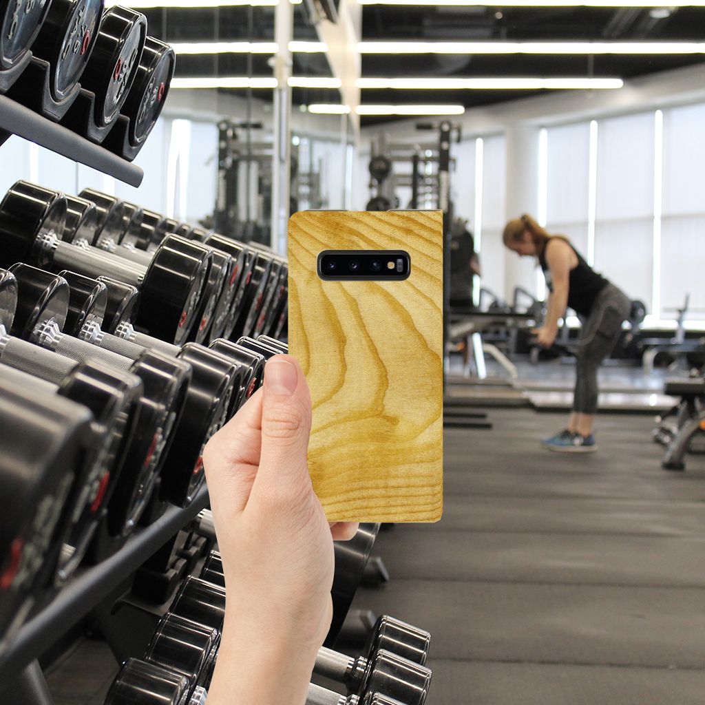 Houd je heel erg van hout in de constructie van huizen, meubelen, vloeren, kozijnen, dakconstructies en voor de afwerking? Dan voel jij je uitstekend op je gemak met dit design hoesje met print van Licht Hout. Deze print staat op een Samsung Galaxy S10 Plus Book Wallet Case, die jouw telefoon aan alle zijden perfect beschermt. Een stand case heeft 1 opbergvakje voor geld en pasjes. Maar daar houdt het niet mee op. Dit hoesje met houten print is aan de binnenzijde gemaakt van TPU (houder) en heeft een handige magnetische sluiting aan de binnenzijde. Een belangrijke hoofdeigenschap van hout is duurzaamheid (bijvoorbeeld tegen weersinvloeden en schimmels). Dit design hoesje, dat beschikt over een standaard, is tevens zeer duurzaam.