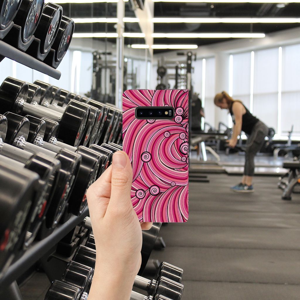Deze mooie Samsung Galaxy S10 Plus Bookcase met Swirl Pink is een geweldige en duurzame bescherming voor jouw smartphone. De kleuren zijn zeer subtiel op het hoesje gezet en worden op alle zijden van de case bedrukt. Dit drukwerk doen we in eigen beheer, zodat het roze en het zwart ook uitstekend tot zijn recht komen op de stand case. Een stand hoesje is perfect op maat gemaakt en heeft een vakje voor een pasje. Daarnaast is de magneet aan de binnenkant zeer veilig. De case sluit perfect af. De houder aan de binnenzijde is van tpu. Ook de standaard aan de buitenzijde wordt in roze met zwart bedrukt. Nergens tref je een hoesje met deze kleuren aan dat zo goed past bij jouw smartphone.