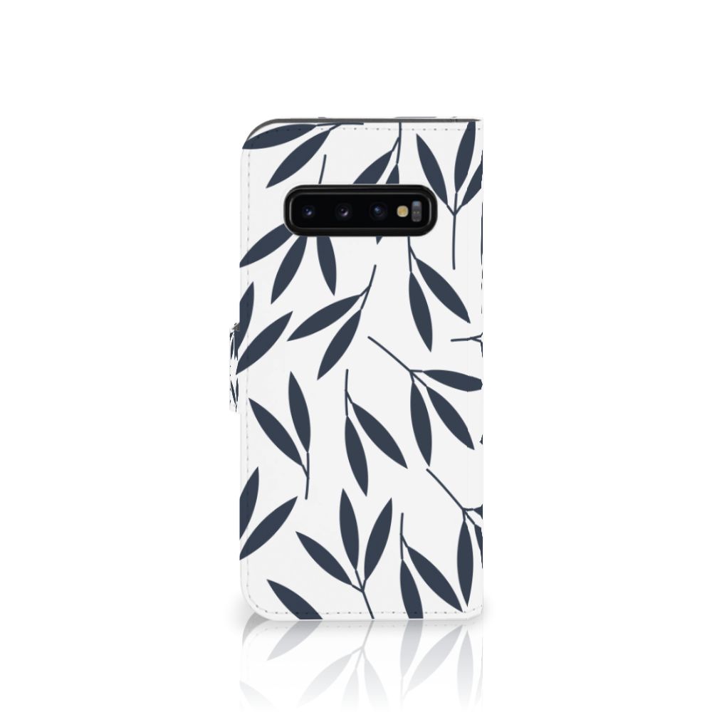 Samsung Galaxy S10 Plus Hoesje met magnetische lipje als sluiting Leaves Blue