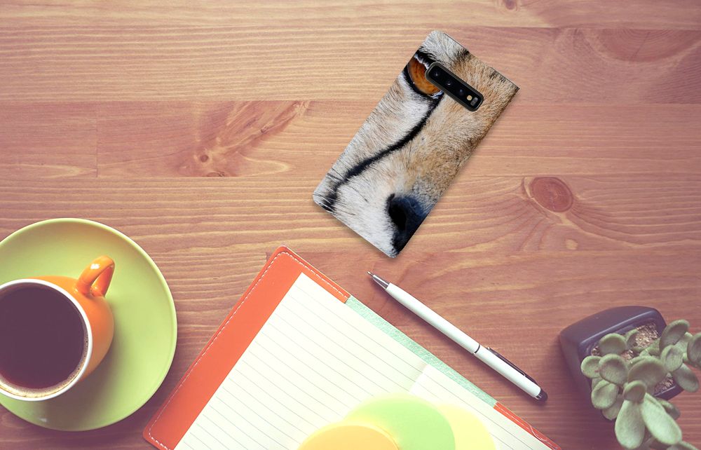 Wist je dat een cheetah, ook wel jachtluipaard genoemd, een topsnelheid van 120 km/u kan halen? Dit maakt de cheetah tot het snelste landdier ter wereld. Dit design hoesje met cheetah print kunnen we dus met recht zeer flitsend noemen. Dit komt niet alleen door de foto van het jachtluipaard, maar ook door de uitstraling van het hoesje. De close up van het dier hebben we op een stand case gezet. Dit is een multifunctionele case, met een vakje aan de binnenzijde waarin je een pasje kwijt kunt. Hiermee is de kous nog niet af, want een Samsung Galaxy S10 Plus Hoesje maken wordt aan de binnenzijde magnetisch afgesloten en heeft een standaard. De vacht van jachtluipaarden is bedekt met ronde, zwarte vlekjes. Hierdoor valt het dier in zijn natuurlijke leefomgeving zo min mogelijk op. Jij doet dat zeker wel, met deze stand case met design. De buitenzijde is van leer, de houder aan de binnenzijde van TPU.