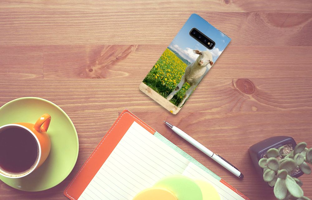 Altijd al een Samsung Galaxy S10 Plus Hoesje maken met design van schapen willen hebben? Dan is dit je kans. Het is niet geheel duidelijk welk ras er op deze handige stand case staat afgebeeld. Er zijn namelijk wel 970 schapenrassen wereldwijd, waarvan hier vooral de heide- en weideschapen bekend zijn. Deze zijn overigens weer onderverdeeld in vlees- en melkschapen. Op deze stand case met pasjeshouder en magneet aan de binnenkant hebben we een oudere en wat jongere schaap staan. Bekende, en ooit bijna verdwenen rassen zijn het Drents heideschaap en het Mergellandschaap, een weideschaap. Andere rassen in Nederland zijn onder meer het Belgisch melkschaap, de zwartbles en de Texelaar. Kies voor een stand case met schapen en lammetjes als je een perfecte bescherming van je smartphone wenst. De houder aan de binnenzijde is van TPU.