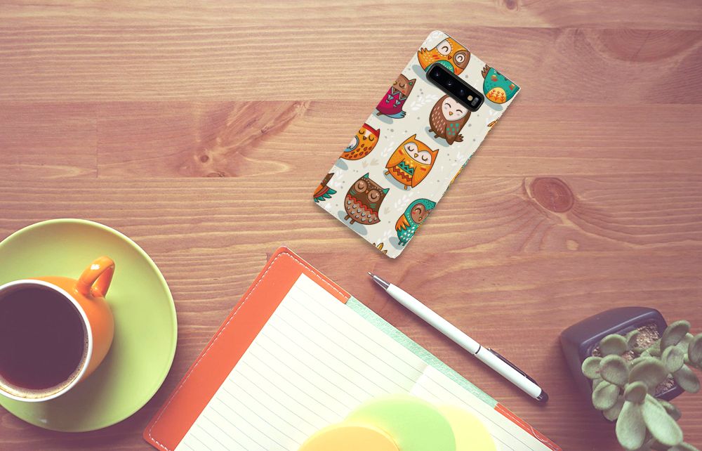 Deze Samsung Galaxy S10 Plus Hoesje maken met Vrolijke Uilen is echt iets voor de nachtbrakers onder ons. De uil is zoals je weet bij uitstek een vogel die in de nachtelijke uren actief is. Ben jij ook iemand die s ’nachts tot leven komt, dan is deze stand case met uilen in felle kleuren echt iets voor jou. Als je tot in de late uurtjes op stap bent, komt het goed uit dat jouw smartphone aan alle kanten goed is beschermd met deze stand case met uilen. De case met uilen heeft een magnetische sluiting aan de binnenkant, waardoor de hoes niet openklapt als die uit je handen valt. Jouw creditcard of pinpas heb je als het goed is veilig opgeborgen in het vakje aan de binnenzijde. De houder aan de binnenzijde van de case met print van uilen is van het flexibele TPU. De wat ruigere types hebben veel baat bij deze stand case met uilen in felle kleuren.