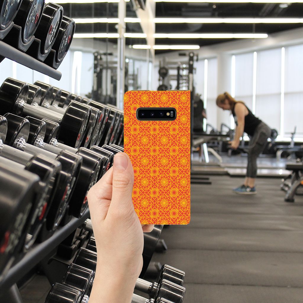 Batikken is een super oude kunstvorm. Met deze methode wordt een geweven stof met verf gedecoreerd. Er zijn stoffen gevonden in het Midden-Oosten en Azië van meer dan tweeduizend jaar oud. Wie had kunnen bedenken dat we zo’n mooie batik-print duizenden jaren later zelfs op telefoonhoesjes zouden terugvinden? Dit Hoesje met Magneet in voor je Samsung Galaxy S10 Plus heeft een mooie oranje kleur en een prachtig symmetrisch patroon. Vanwege de felle kleurtjes is dit hoesje onwijs vrolijk. Het hoesje heeft binnenin één vakje voor een pasje en een magnetische sluiting aan de binnenkant. Verder heeft de batik orange-hoes een houder van TPU. Het leuke van een standcase is dat je hem eenvoudig neer kunt zetten. Zo heb je je handen vrij als je bijvoorbeeld een video wilt kijken op je smartphone.