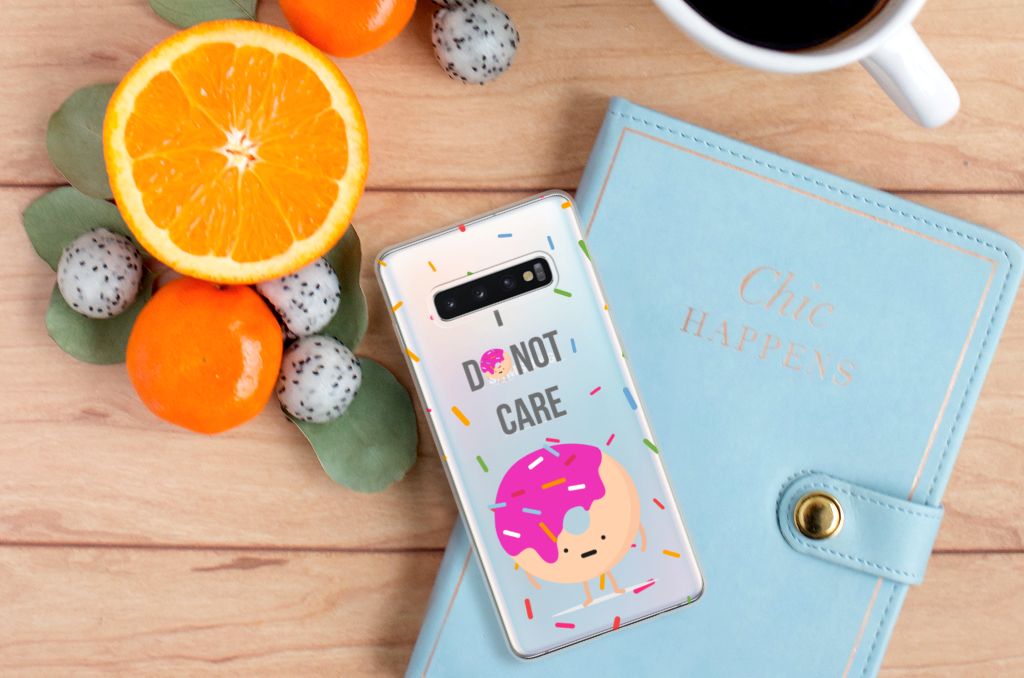 De cartoon met Donut op dit design hoesje geeft jouw smartphone een grappige en vrolijke uitstraling. De Samsung Galaxy S10 Plus Siliconen Case zorgt ervoor dat je je schouders op zult halen als je telefoon een keer op de grond valt. Omdat er geen schade zal optreden kun jij je weg weer heel makkelijk vervolgen. De grappige Donut Care tpu case is nergens anders te krijgen. Het design is namelijk van de hand van onze eigen ontwerper. Daarnaast zal de case jouw smartphone goed beschermen. Een Donut Care tpu case is een zeer flexibel hoesje. Dit komt onder andere door het elastische en onbreekbare materiaal. Verder is de case zeer praktisch. Wat denk je bijvoorbeeld van de opstaande randen aan de voorkant. Verder beschikt de case ook nog eens over alle noodzakelijke uitsparingen. Ook kun je zelf je eigen unieke hoesje ontwerpen, met eigen cartoons, foto’s en teksten. Een Donut Care tpu case wordt alleen aan de bovenkant bedrukt. De randen blijven volledig doorzichtig.
