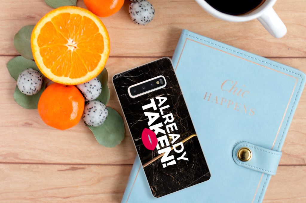 Met deze Samsung Galaxy S10 Plus Siliconen hoesje met naam met Already Taken Black tekst maak je duidelijk dat jouw smartphone een kostbaar bezit is, waar je zeer lang over wilt beschikken. Je telefoon neem je waarschijnlijk vaak ter hand, dus dan zal de boodschap als je over dit hoesje beschikt zeker weten overkomen. De TPU case wordt alleen aan de bovenkant bedrukt en is zeer flexibel. De randen van het hoesje blijven transparant. Wil je een eigen tekst op je hoesje zetten? Dit kan ook, met onze Phone Case Designer. Deze unieke ontwerpmodule is ook geschikt om het design uit te breiden met foto’s, effecten en patronen.