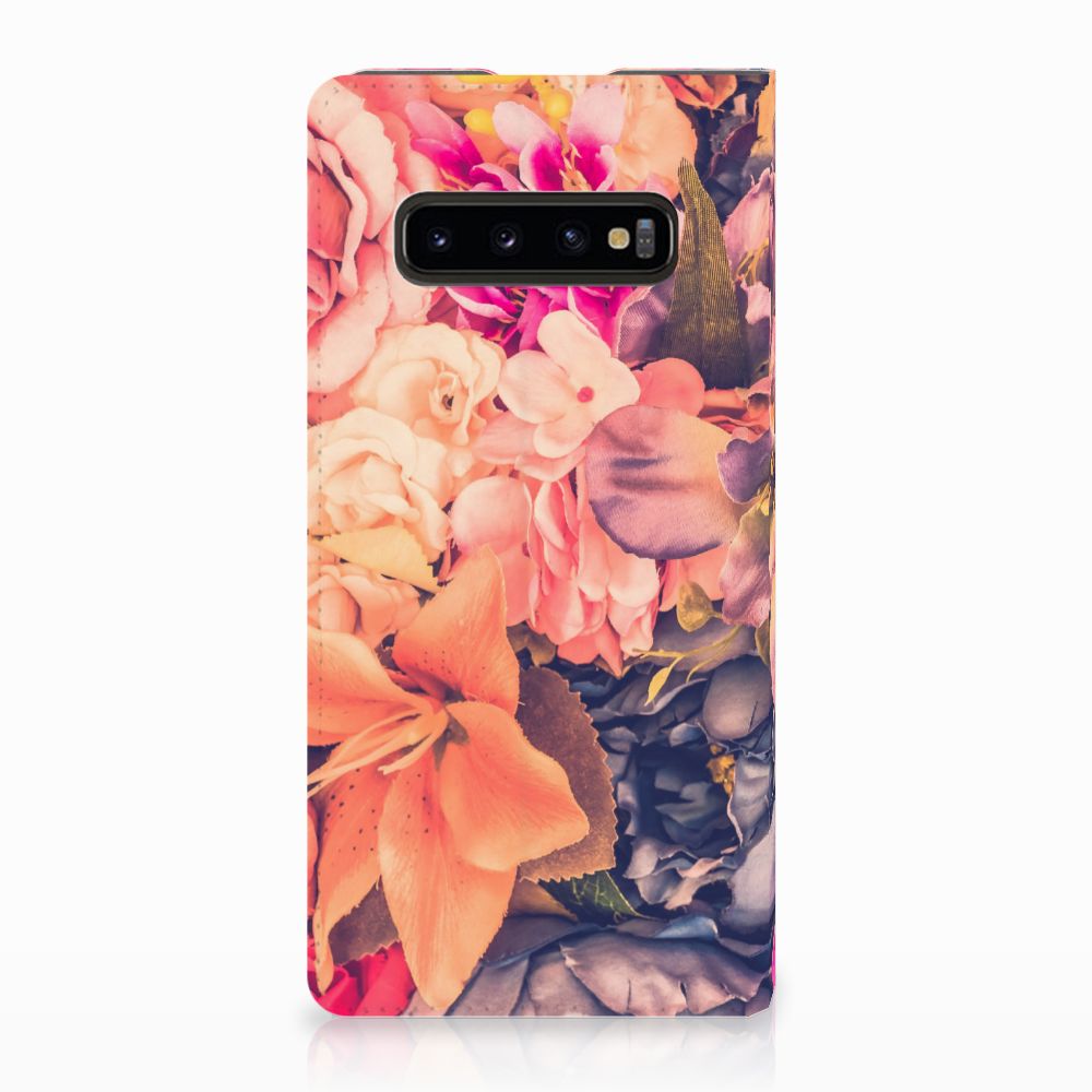 Dit Bosje Bloemen doet een mens en zijn smartphone goed. De oranje, paarse en roze bloemen op deze Samsung Galaxy S10 Plus Smart Cover geven jouw smartphone een zeer sierlijke uitstraling. Je wordt er ook meteen vrolijker van als je aan het appen, mailen of aan het bellen bent. Valt dan je telefoon op de grond, dan zal er dankzij de stand case met oranje, paarse en roze bloemen geen schade ontstaan. Onze stand cases met oranje, paarse en roze bloemen bieden de allerbeste bescherming en zijn heel praktisch, wat blijkt uit onder meer het vakje aan de binnenkant en de handige standaard waarmee je de smartphone rechtop op tafel neer kunt zetten. De oranje, paarse en roze bloemen passen goed op alle zijden van de case. Op deze stand case van leer en TPU (houder aan de binnenkant) is het ook mogelijk je eigen ontwerp te zetten. In no time maak je zelf een stand case met daarop foto’s van jouw favoriete bloemen.