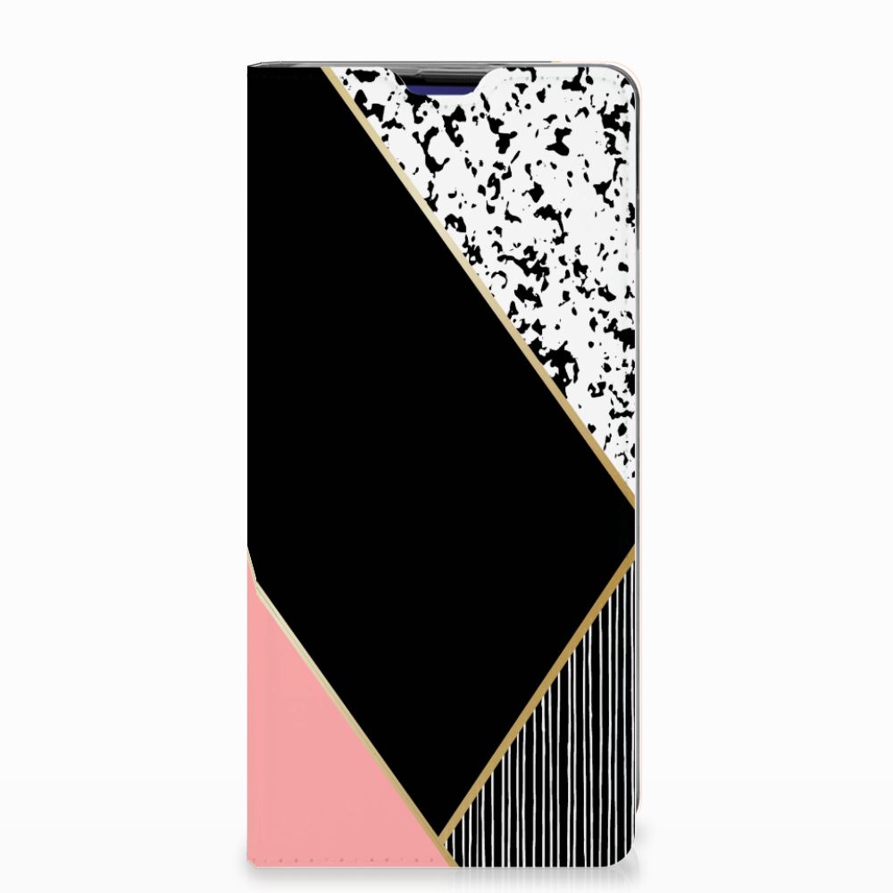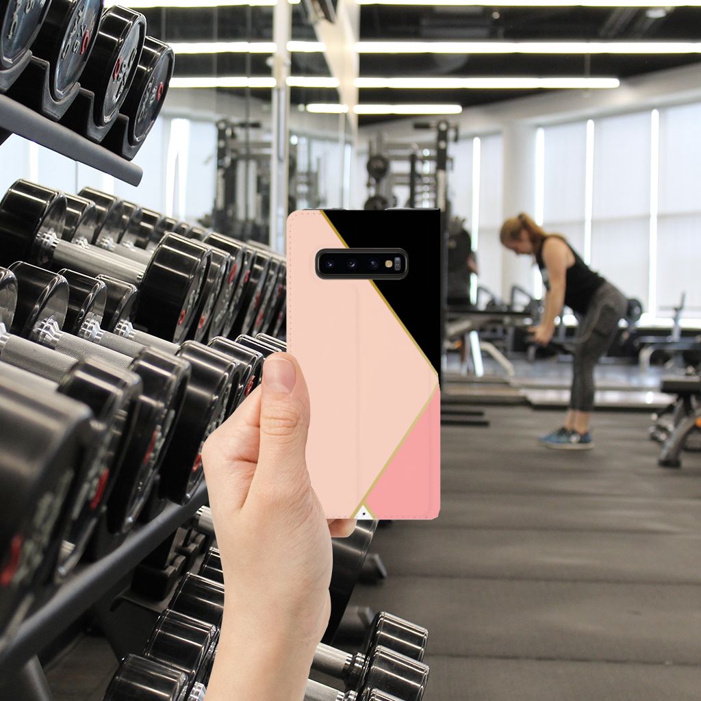 Samsung Galaxy S10 Plus Print Stand Case Zwart Roze Vormen
