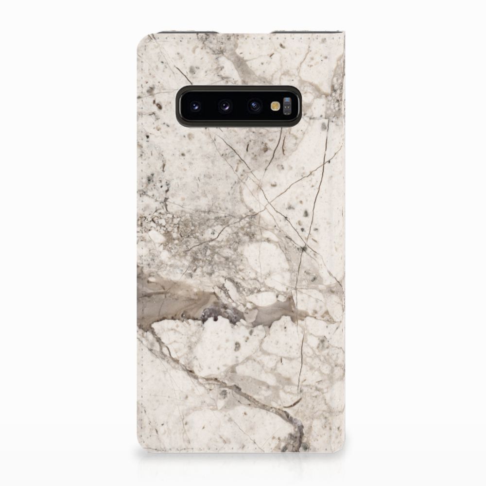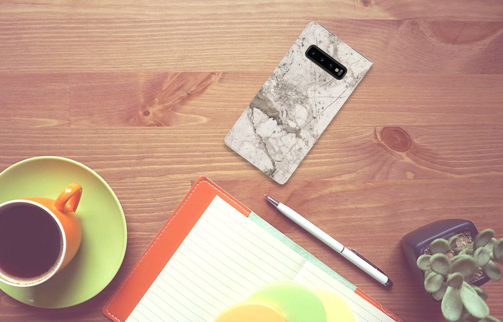 Dit design hoesje met Marmer Beige is voor de artistieke personen onder ons. De Grieken en Romeinen wisten het steen al te waarderen door het als bouw- en bekledingsmateriaal toe te passen. Naast het witte Carrara marmer met haar zacht grijze geaderde belijning zijn de diverse marmersoorten in een ruim kleurenpallet te krijgen. We hebben verschillende kleuren op design hoesjes gezet, zoals in dit geval beige marmer. Dit is een Samsung Galaxy S10 Plus Standcase met marmer in beige kleur. Het marmer wordt bedrukt op alle zijden van een stand case, die beschikt over 1 vakje voor een pasje en toebehoren en een magnetische sluiting aan de binnenkant. Verder heeft de case een houder van TPU. De rijkheid aan kleuren en varianties in afwerking geeft designers de vrijheid om met marmer hele mooie architectonische projecten te realiseren. Wij hebben onze designer ook veel vrijheid gegeven. Het resultaat zie je terug in deze stand case met beige marmer, dat de ideale bescherming voor jouw smartphone biedt.