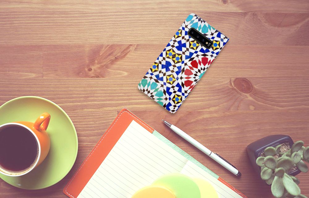 Aan design hoesjes met kunstvormen geen gebrek in onze uitgebreide collectie. Wat dacht je van dit design hoesje met Mozaïek . Dit is een kunstvorm waarbij een grote afbeelding wordt gemaakt uit een groot aantal kleine gekleurde steentjes (tesserae), die in een vloer of wand worden gemetseld. Deze gekleurde steentjes zie je terug op deze stand case met design van mozaïek. Een stand case is een van de veiligste cases die er bestaan. Een Samsung Galaxy S10 Plus Standcase met print zorgt voor een volledige bescherming van je smartphone en wordt aan alle zijden bedrukt met mozaïek. Verder is de houder aan de binnenzijde van TPU. De Grieken en Romeinen beheersten de kunst al. Op diverse plaatsen in Europa zijn mozaïeken teruggevonden die tot op de dag van vandaag goed bewaard zijn gebleven. Met een hoesje met mozaïek blijft jouw telefoon in tact. Je pasje en kun je in het vakje aan de binnenzijde stoppen. De case heeft ook een standaard.
