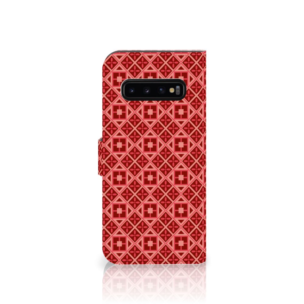 Batikken is een super oude kunstvorm. Met deze methode wordt een geweven stof met verf gedecoreerd. Er zijn stoffen gevonden in het Midden-Oosten en Azië van meer dan tweeduizend jaar oud. Wie had kunnen bedenken dat we zo’n mooie batik-print duizenden jaren later zelfs op telefoonhoesjes zouden terugvinden? Dit Telefoon Hoesje in voor je Samsung Galaxy S10 Plus heeft een mooie rode kleur en een prachtig symmetrisch patroon. Dankzij de pasjeshouder in het boekhoesje, heb je altijd je belangrijkste bezittingen bij je. Super handig en ook nog eens erg mooi. En bovenal is je telefoon meteen goed beschermd tegen krassen en beschadigingen. Dit Batik red-hoesje heeft een lipje aan de buitenkant en een houder gemaakt van TPU.