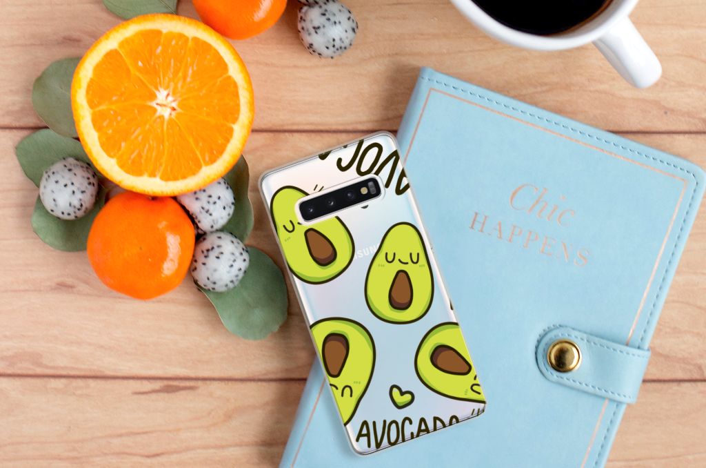 Avocado’s zijn niet alleen heel erg goed voor je, ze zijn ook super leuk op je telefoonhoesje. Dit unieke design vol schattige avocado’s zal jou en iedereen om je heen meteen opvrolijken. Nog een voordeel van dit design: deze avocado’s bederven nooit! Dit leuke Avocado Singing-ontwerp staat op een Telefoonhoesje met Naam voor de Samsung Galaxy S10 Plus. Met deze vrolijke groene vruchten op je hoesje val jij zeker op. TPU is flexibel en onbreekbaar. Zo is je telefoon aan de achterkant en de randen heel goed beschermd. De case is aan de bovenkant bedrukt, de randen blijven transparant. Het TPU-hoesje is perfect te combineren met een screenprotector, zo zijn je telefoon en je beeldscherm perfect beschermd.