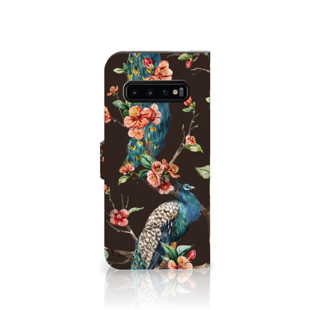 Samsung Galaxy S10 Plus Telefoonhoesje sluit met magnetisch lipje Pauw | Bloemen