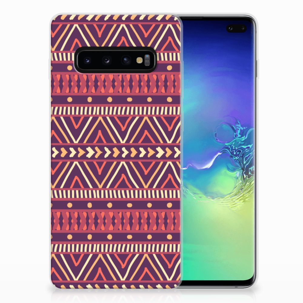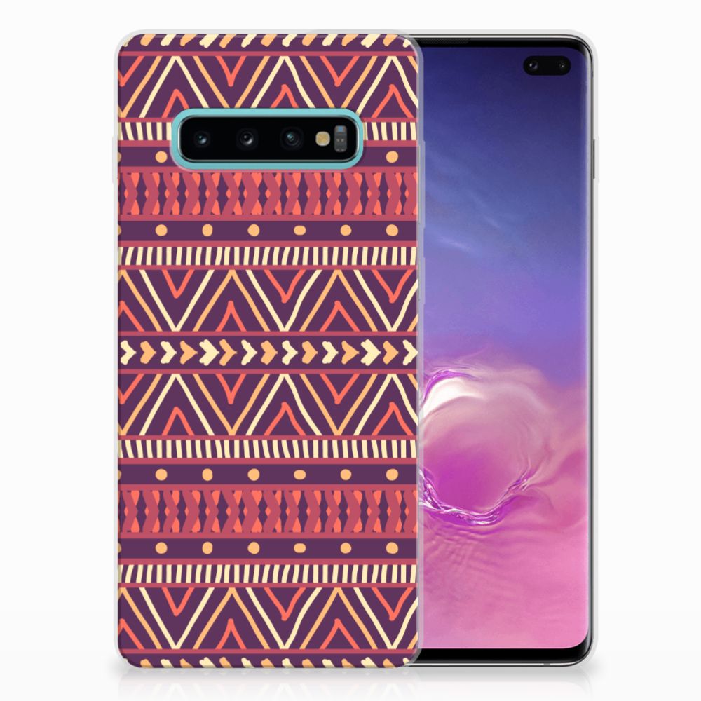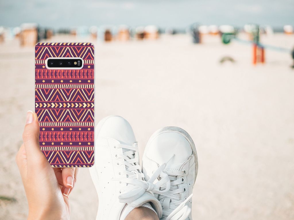 De Azteken leefden tussen 1200 en 1521 in het huidige Mexico. De mooie Aztec-patronen waar zij bekend om stonden, zien we nu nog op kleding, stoffen en tassen. Wie had toen kunnen bedenken dat we diezelfde prints honderden jaren later zelfs op een telefoonhoesje zouden vinden? Dit kleurrijke Aztec Purple-hoesje is perfect voor iedereen die een stukje geschiedenis bij zich wil dragen maar ook gewoon een mooi patroon op zijn hoesje wil. Dit vrolijke, kleurrijke ontwerp staat op een TPU bumper voor de Samsung Galaxy S10 Plus. TPU is flexibel en onbreekbaar. Zo is je telefoon aan de achterkant en de randen heel goed beschermd. De case is aan de bovenkant bedrukt, de randen blijven transparant.