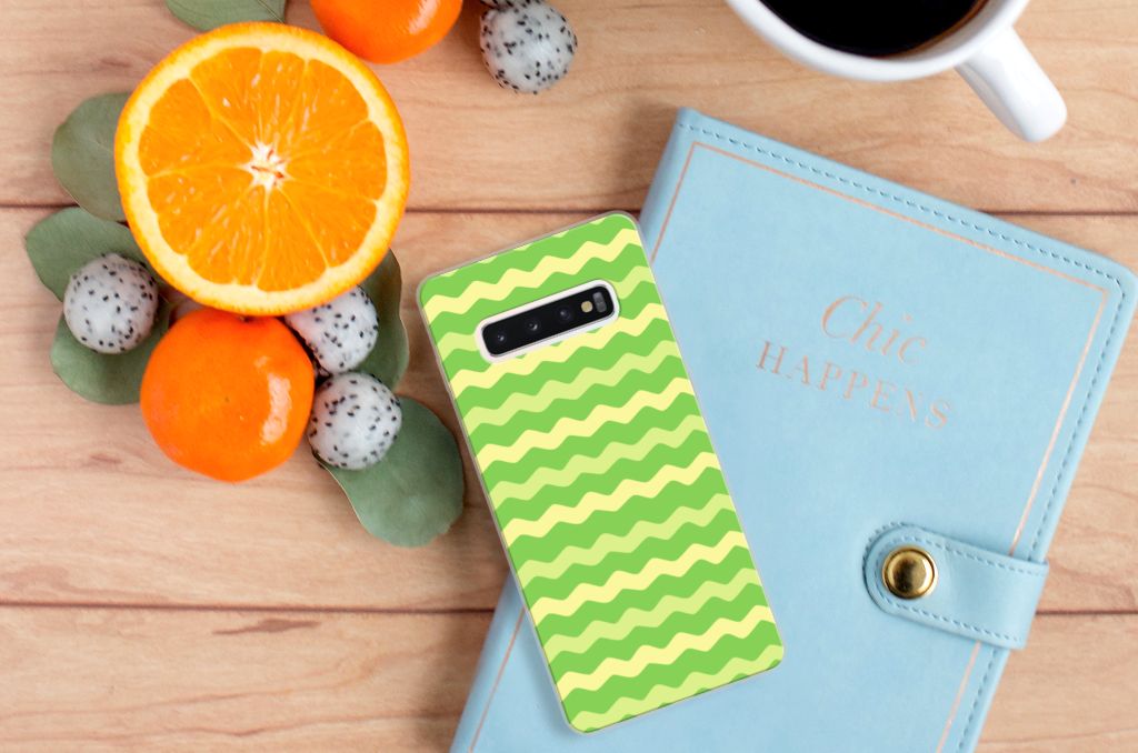 Dit groene design hoesje met groene golven is speciaal ontworpen voor jouw telefoon. We hebben een vleugje geel toegevoegd, zodat er sprake is van variatie. Dit Waves Green hoesje ziet er flitsend uit. Dat kan ook niet anders, als je weet dat we veel energie steken in het bedenken van originele designs. Een heel strak Samsung Galaxy S10 Plus TPU bumper, met zeer veel opties. Past dit groene design hoesje met golven goed bij jou? Bestel het dan vandaag nog, tegen zeer lage kosten. Het design staat op een TPU case. Dit hoesje wordt alleen aan de bovenkant bedrukt en is zeer flexibel. De randen van het hoesje met groene golven blijven transparant en worden niet bedrukt. Met dit hoesje past jouw telefoon altijd in je broekzak.