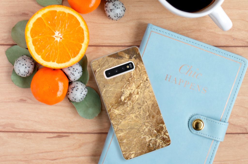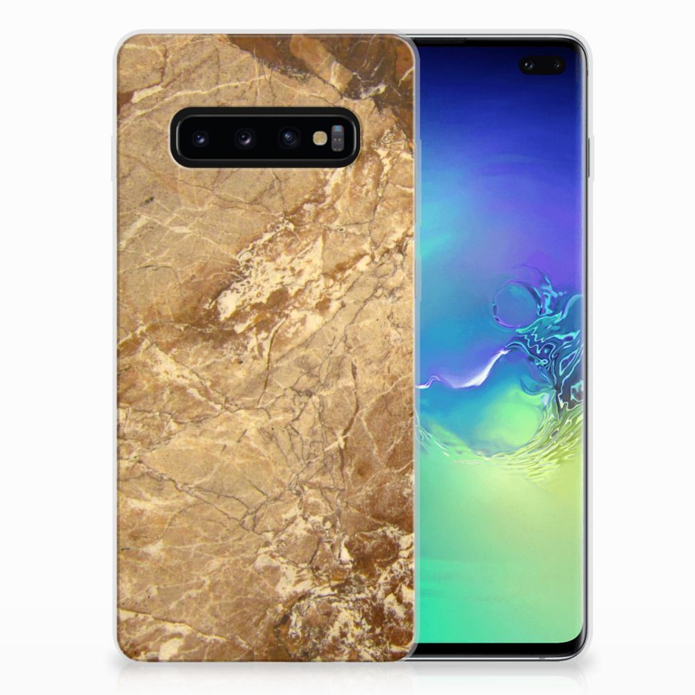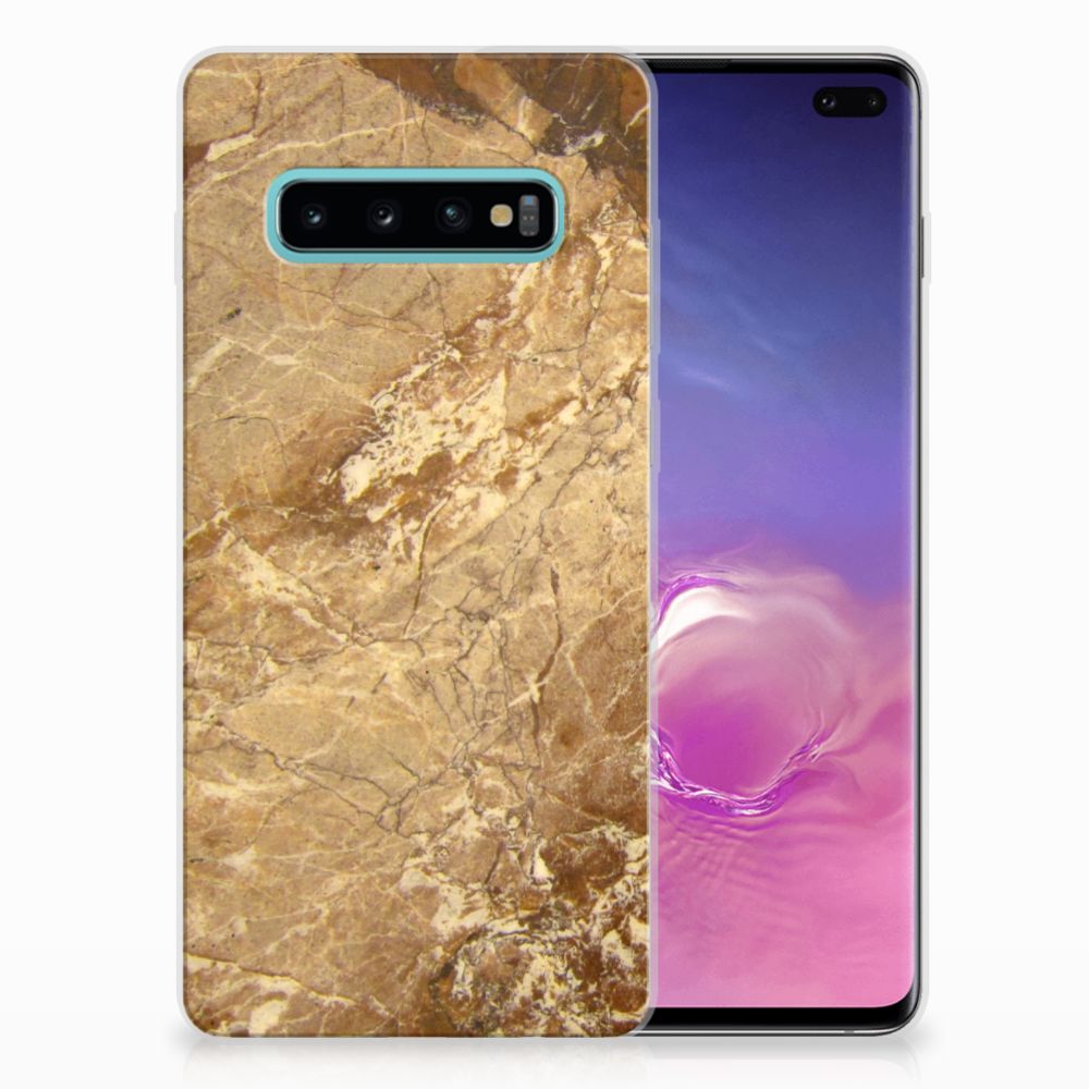 Dit design hoesje met Marmer in lichtbruine kleur is voor de artistiekelingen onder ons. De Grieken en Romeinen wisten het marmer al te waarderen door het in de bouw toe te passen. Naast het witte marmer zijn de diverse soorten marmer in een gevarieerde kleurensamenstelling te krijgen. We hebben verschillende mooie kleuren op design hoesjes gezet, zoals in dit geval het lichtbruine marmer. Dit is een Samsung Galaxy S10 Plus TPU Siliconen Hoesje met marmer in lichtbruine kleur. Het marmer wordt bedrukt op de voorkant van een tpu case, die beschikt over opstaande randen aan de voorkant en heel goed combineert met een screenprotector van glas of van folie. Door de rijkdom aan kleuren en varianties in afwerking kunnen ontwerpers met marmer schitterende architectonische projecten realiseren. Wij hebben hetzelfde gedaan en onze ontwerper veel vrijheid geboden. Het resultaat zie je terug in deze tpu case met lichtbruin marmer, die jouw smartphone goed beschermt. De zijkanten van de case worden niet bedrukt met het lichtbruine marmer.