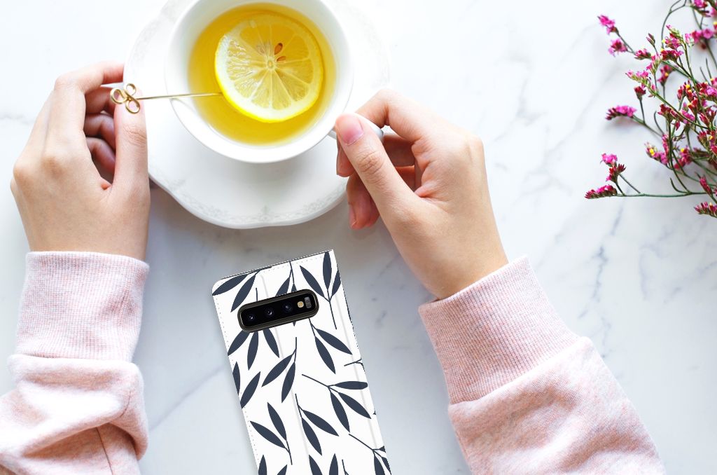 Je bent een klein beetje verbonden met de natuur als je kiest voor dit Samsung Galaxy S10 Smart Cover met print van donkergrijze bladeren. De print bestaat uit verschillende donkergrijze bladeren en dit zorgt voor een fraai decoratief geheel. Met dit patroon van donkergrijze bladeren op een lichtgrijze met witte achtergrond creëer je een opvallende uitstraling voor jouw smartphone. Jij doet er verstandig aan om je telefoon te beschermen met dit design hoesje met donkergrijze bladeren, die staan op een stand case. Dit hoesje heeft onder meer het handige vakje aan de binnenzijde en de magnetische sluiting aan de binnenzijde. Het beschermt jouw telefoon aan alle zijden. Het TPU aan de binnenzijde is zeer flexibel. We hebben meerdere hoesjes met bladeren. Je kunt ook je eigen hoesje met eigen foto’s van bladeren ontwerpen.