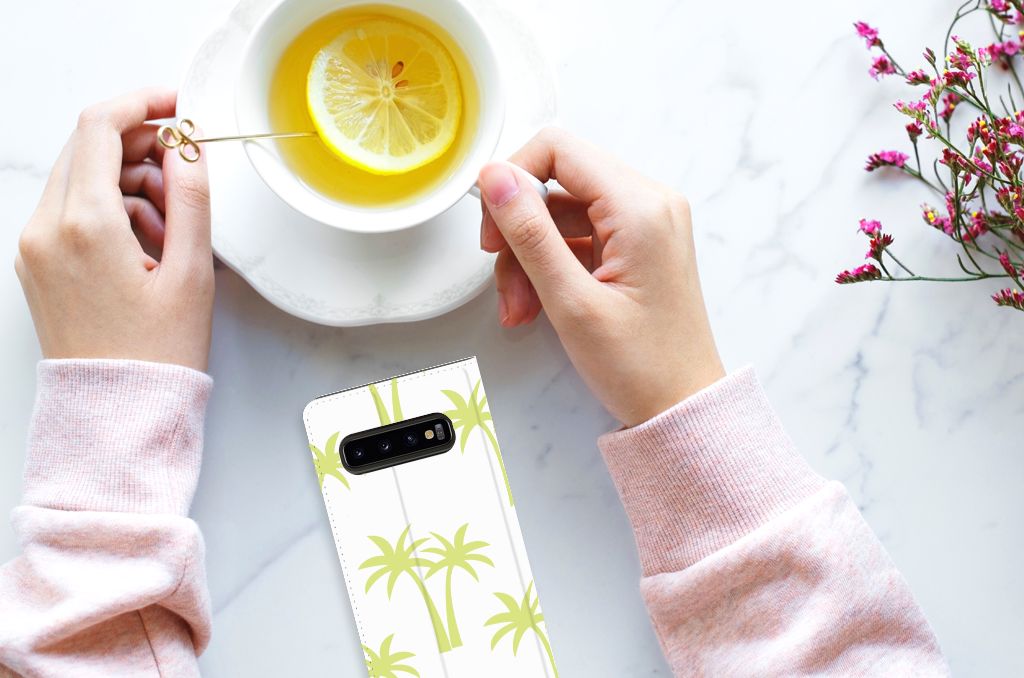Je krijgt direct een vakantiegevoel als je kiest voor een Samsung Galaxy S10 Smart Cover met opdruk van lichtgroene Palmtrees. Sommige mensen hebben ook een palmboom in hun tuin staan, wij kunnen er meerdere op een stand case zetten. Jouw smartphone is op en top beschermd met een stand case met lichtgroene palmbomen tegen een witgrijze achtergrond en ziet er schitterend uit. Het is heel verstandig je telefoon te beschermen met dit stand hoesje met lichtgroene palmbomen tegen een witgrijze achtergrond. Het stand hoesje met palmbomen heeft een vakje aan de binnenzijde en een magneet aan de binnenkant. Dit stand hoesje met lichtgroene palmbomen tegen een witgrijze achtergrond beschermt jouw telefoon aan alle zijden en heeft een standaard. De houder van TPU aan de binnenzijde is zeer flexibel.