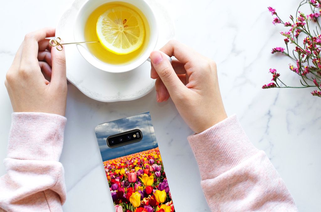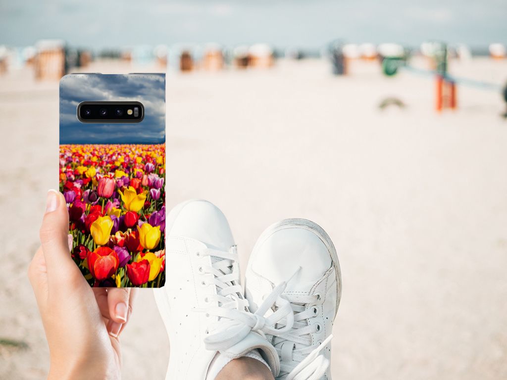 De tulp is een oer-Nederlandse bloem en heeft een lange geschiedenis. Deze Samsung Galaxy S10 Smart Cover met Tulpen ziet er bijzonder kleurrijk uit. Dit fleurige smartphone hoesje geeft een bijzondere bescherming van jouw apparaat. Tulpen zijn ideaal voor een kleurrijk begin van het tuinseizoen. Iedereen wordt er vrolijk van om te zien hoe deze bloemen het voorjaar kleur geven en het begin van de warmere tijd van het jaar aankondigen. Dan kan het toch niet anders of jij wordt heel erg blij van deze stand case met tulpen? Deze populaire stand case heeft ruimte voor een pasje of briefgeld aan de binnenzijde en wordt magnetisch afgesloten. De houder aan de binnenkant is van TPU en de case wordt aan alle zijden bedrukt met tulpen. Je kunt ook zelf een stand case maken met daarop jouw favoriete bloemen.