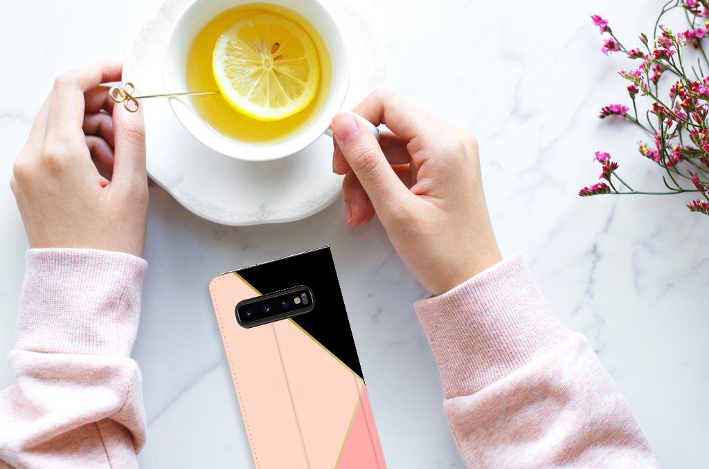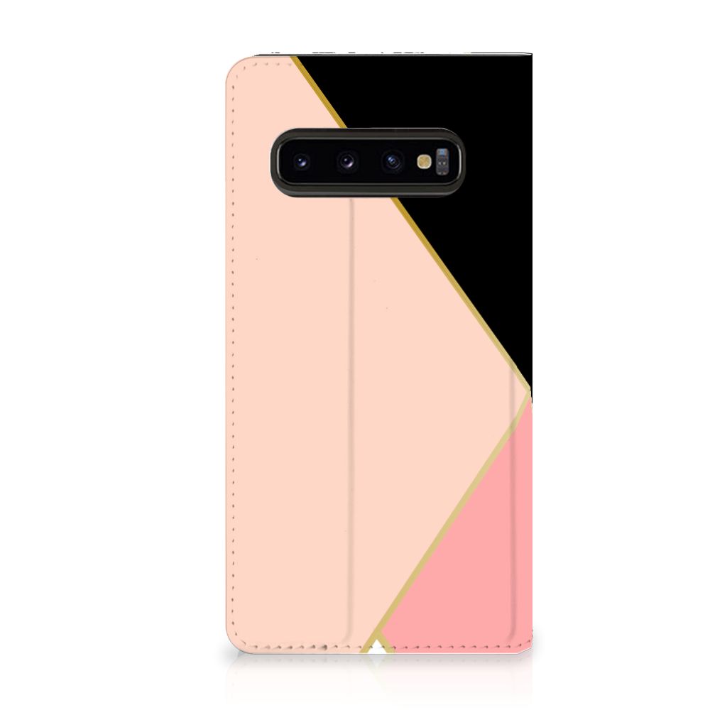 Samsung Galaxy S10 Print Stand Case Zwart Roze Vormen